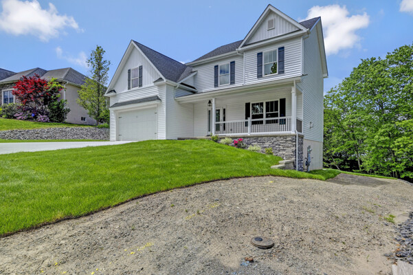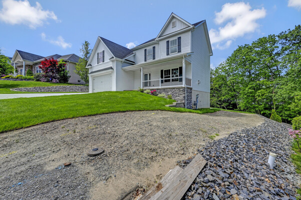 Welcome to this spacious, newly completed home in Acorn Hill Estates. Ideally located just minutes from Rt 6 (Casey Highway) & Rt 81, this residence is set on a generous lot, perfect for those who value space & tranquility. A wide concrete driveway & sidewalks lead to an inviting entryway. Step into a spacious living room featuring custom fireplace & beautiful built-in maple cabinetry. The open concept kitchen boasts high-end maple cabinets, sleek quartz countertops, Delta faucets, stylish tiled backsplash, appliances. The kitchen's lighted peninsula leads to a cozy breakfast area, ideal for casual dining. Adjacent, a formal dining /family room offers easy access through a Pella sliding door to a 36'x12' concrete patio, perfect for indoor-outdoor entertaining. The first floor features durable, wire brushed oak hardwood flooring throughout, with tile flooring in the powder room. A staircase with oak steps, oak handrail, black metal pickets, leads to the hardwood floored second level, with four generously sized bedrooms as well as a Cathedral ceiling bonus room suited for den, office, bedroom, gaming room. The primary bedroom suite is a luxurious retreat with hardwood floors, two lighted walk-in closets, & a beautifully designed ensuite bath. This spa-like bathroom includes a custom tiled shower, freestanding acrylic tub, double sinks with granite counters, Delta faucets, & a tiled floor For added convenience, a laundry room with a washer/dryer is also located on this level. Two HVAC systems service the home for year-round comfort. The expansive walkout basement offers 9' poured concrete walls, ready to be finished to your liking. Plumbed for a half bath, it enjoys ample natural light & access through sliding doors to concrete patio, overlooking a large, private rear yard. Landscaped with Arborvitae trees, this outdoor space is perfect for entertaining. Don't miss your chance to make this thoughtfully designed, turn-key property your forever home.