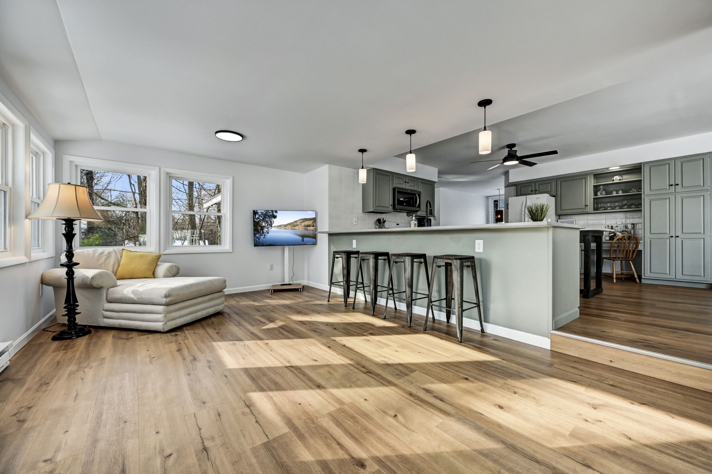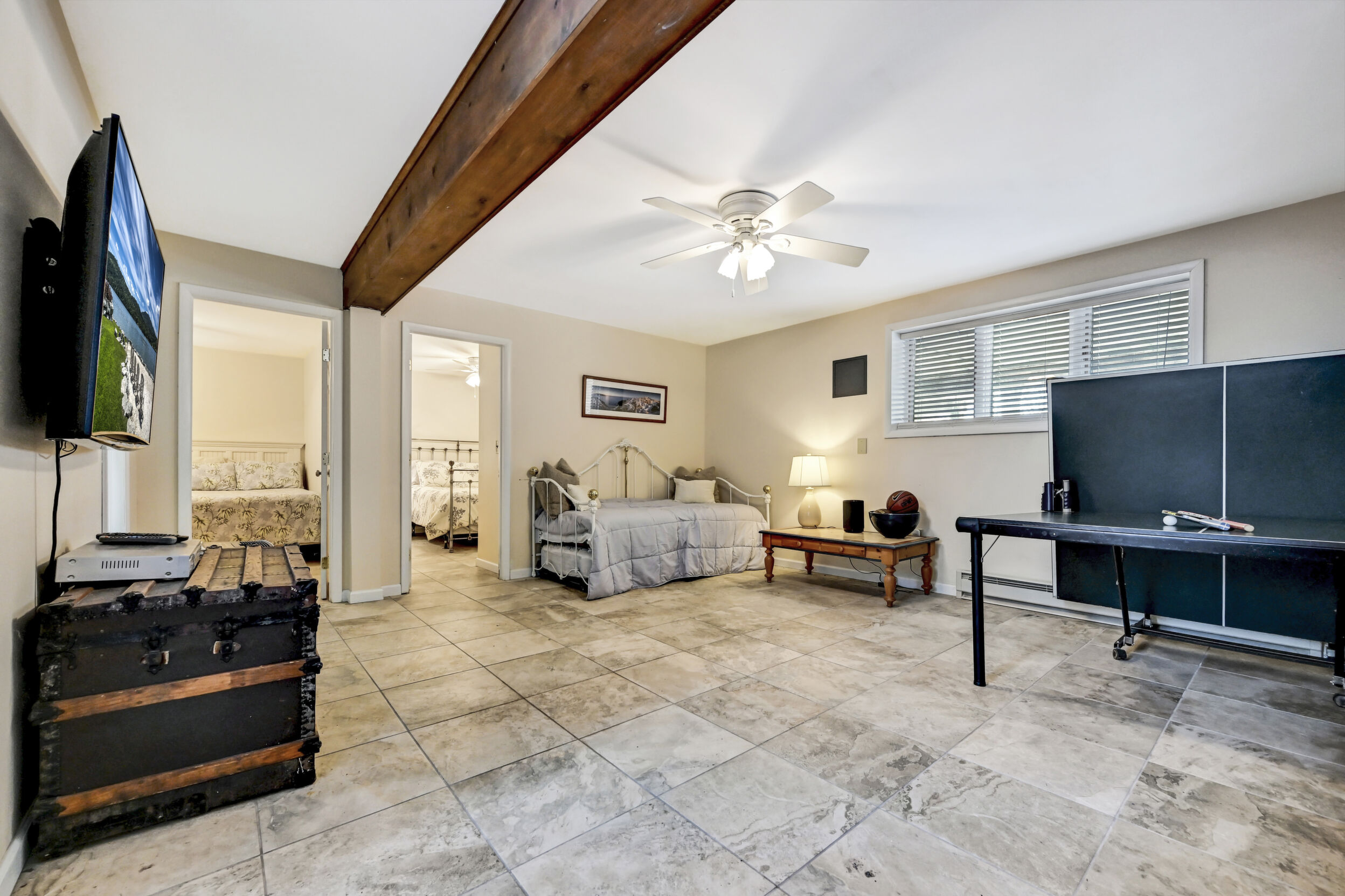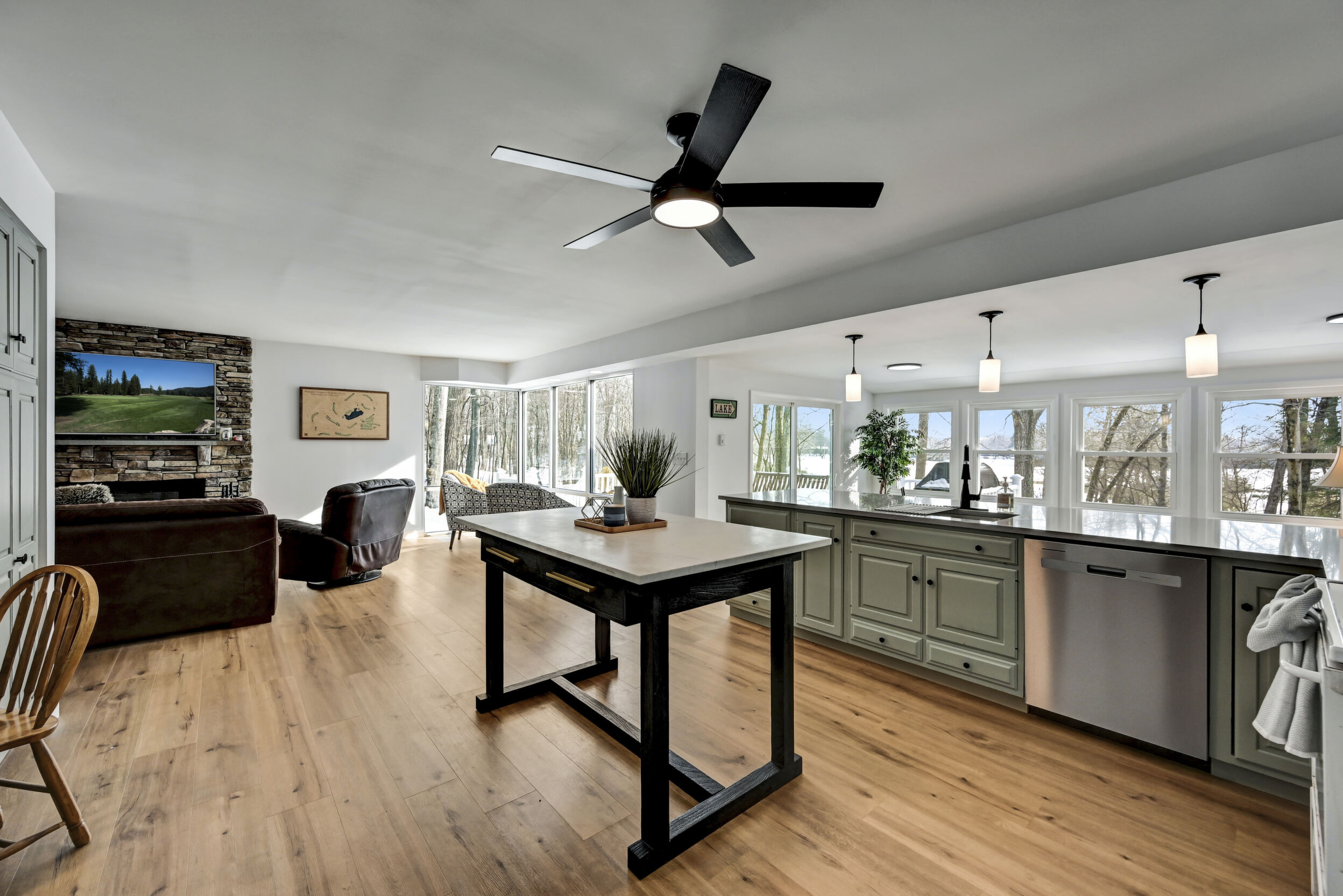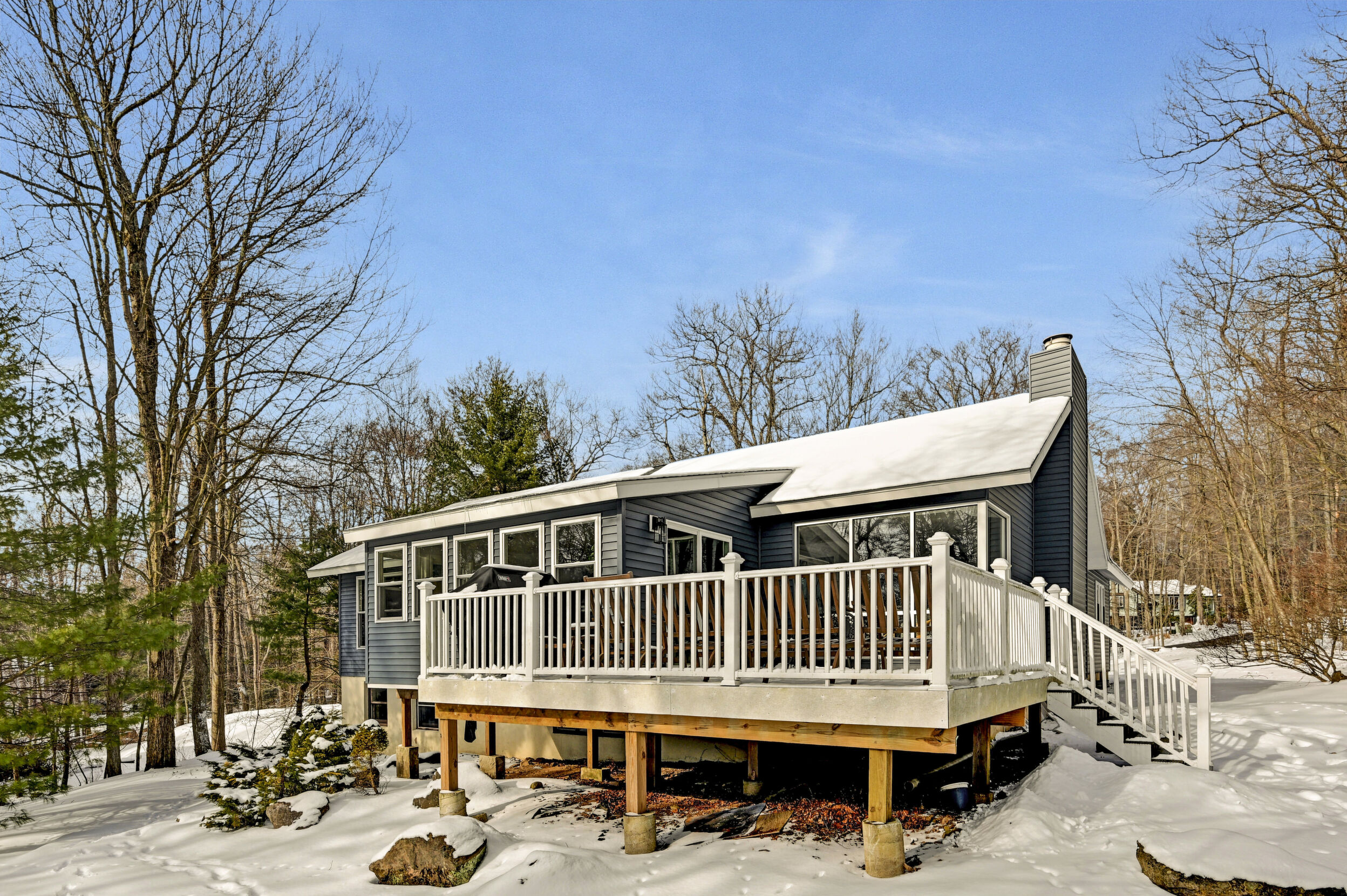 Rare Golf & Lakefront Pocono Home w/ Private Access To One Of The Most Desirable Holes On The Course, A Short Par Overlooking Both The Beach And Lake, Providing Stunning Views & A Truly Unique Setting! This Tastefully Renovated Gem Sits On Nearly 1/2 Acre In A Peaceful Cul-De-Sac w/ Circular Driveway, 2 Car Garage & Ample Parking. Step Outside To Enjoy The New Decking, Private Backyard & Fire Pit. New Roof, New Siding, New Windows & New Fixtures Set The Stage For Success. The Modern Kitchen Showcases Tasteful Updates, Quartz Countertops & Island, Flowing Seamlessly Into The Sunlit Sunken Four Season Room With Stunning Lake Views, Hardwood Flooring & Bar Top Seating. Relax In The Family Room Featuring Hardwood Floors, Wood Burning Fireplace With Floor-To-Ceiling Stone Wall & Mantel, Or Unwind In The Scenic Sitting Nook With Panoramic Lake And Golf Views. Formal Dining Room Offers Hardwood Floors And A Striking Beamed & Vaulted Ceiling. The Freshly Painted Master Bedroom Suite Opens To A Private Deck, While The Elegantly Upgraded Master Bath Includes A Cozy Sauna And Walk-In Tiled Shower. Additional Highlights Include 3rd Bedroom w/ Attic Access, Spacious Renovated Main Tiled Bath w/ Double Vanity & Laundry Closet, Spacious Bedroom 2 With Lakefront View, Walk-In Closet & Jack & Jill Bath. Tiled Lower Level Recreation Room Has Garage Access, Several Tiled Bonus Rooms & Lower Level Full Bath. This Resort-Style Community Features An Art Wall Jr. Designed Championship Golf Course, Practice Facility, Pro Shop, Casual Dining, Catering & Banquet Spaces, Olympic Size Pool, Tennis Courts, Fitness Center, Sandy Beach, Stocked Lake & Family Entertainment Events. The Lifestyle You Deserve!