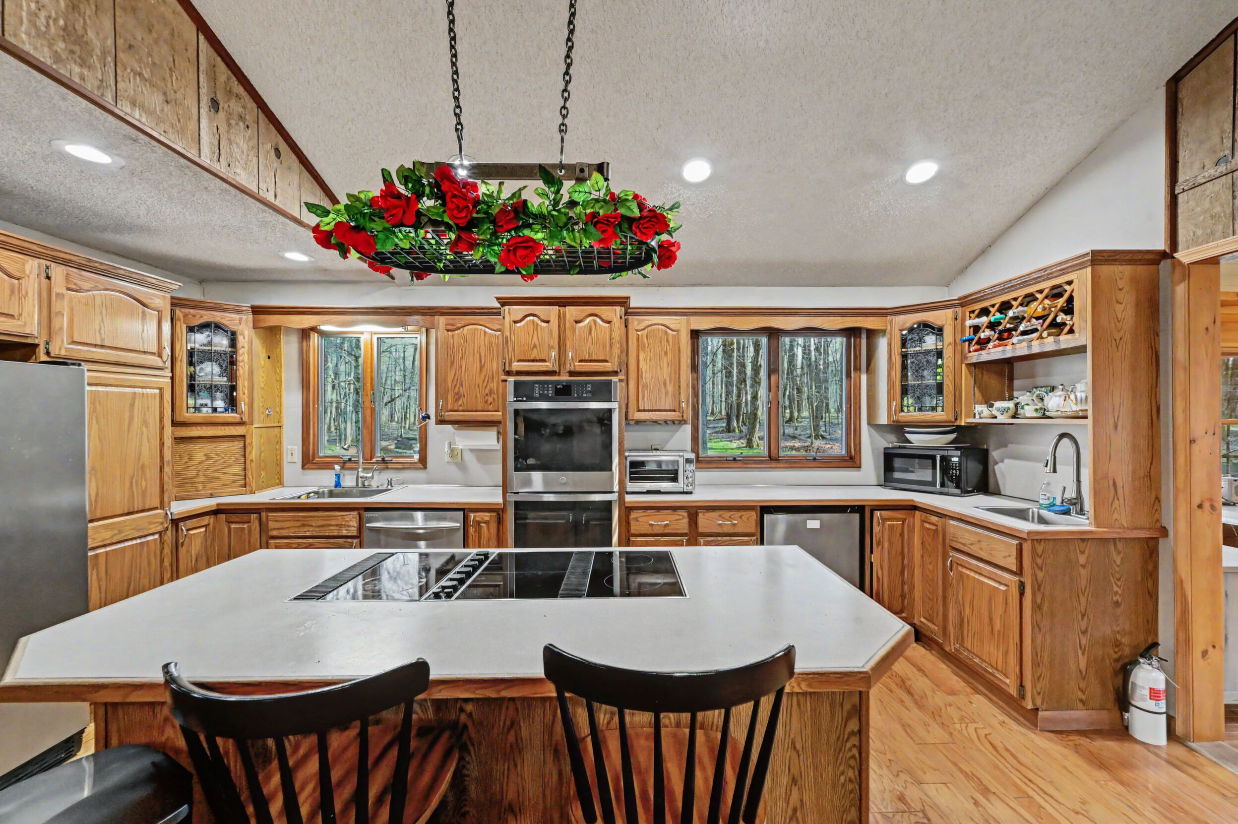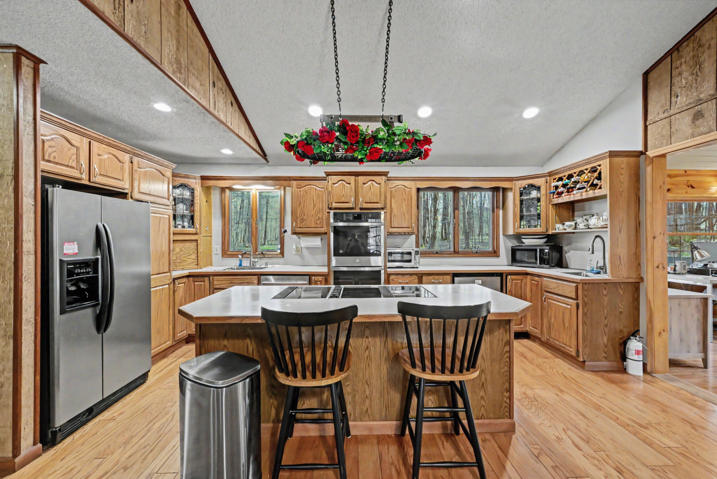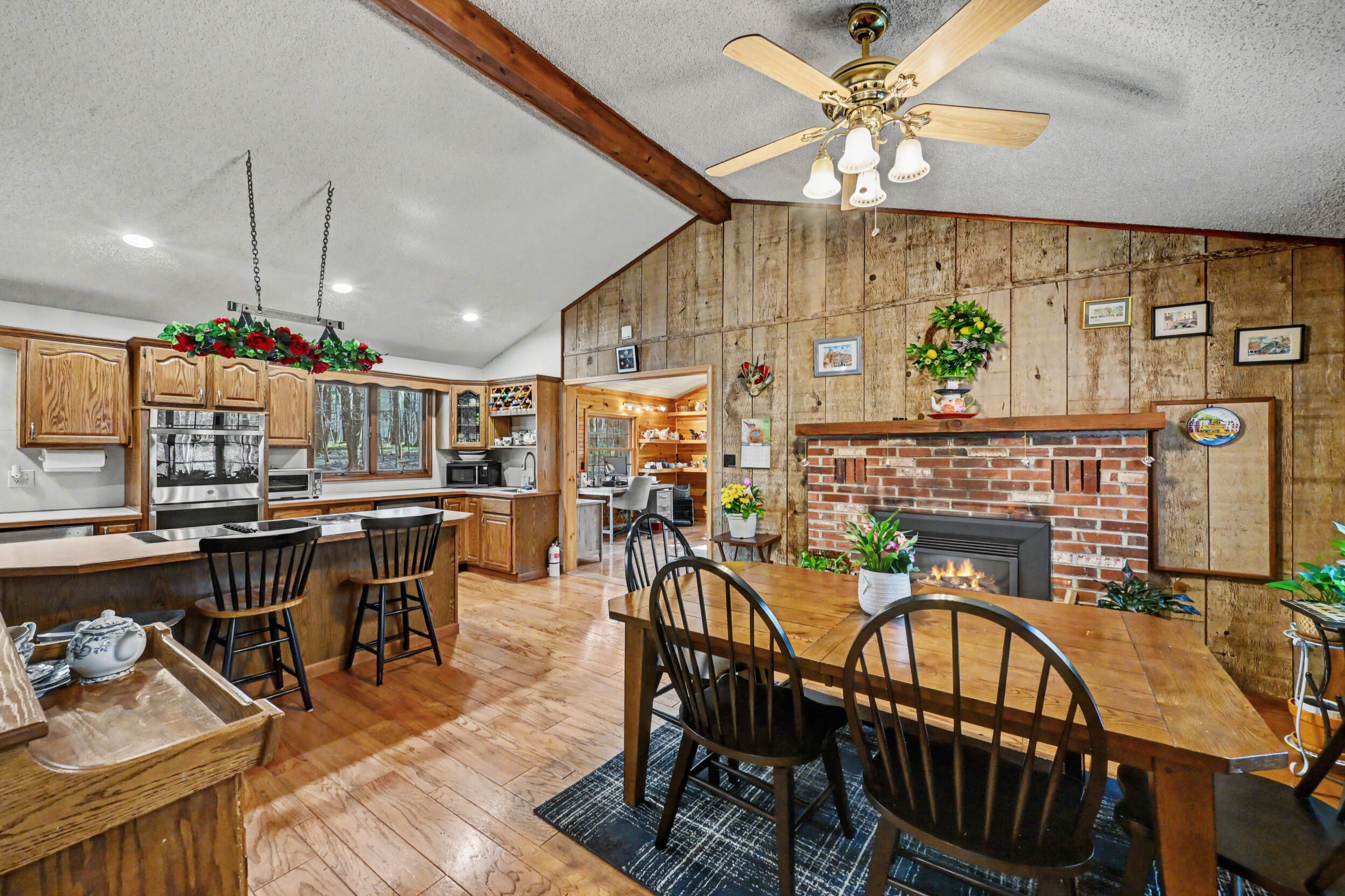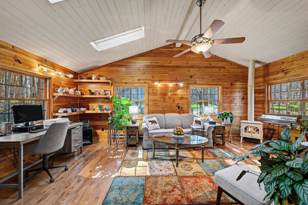 Welcome to your dream retreat nestled in the heart of the Big Bass Lake Community Association! This stunning 4-bedroom, 3-bathroom home offers 2,417 square feet of thoughtfully designed living space that seamlessly blends comfort with character.Step inside and let the gorgeous hardwood floors guide you through a home that practically radiates warmth -- literally, thanks to three fireplaces strategically placed throughout. Whether you're curling up with a good book or hosting friends for game night, there's always a crackling fire within reach.The spacious kitchen serves as the true heart of this home, offering generous counter space and plenty of room for culinary adventures. Adjacent, the stunning four seasons room features beautiful pine tongue and groove detailing, creating an inviting space to enjoy every season the Poconos has to offer.Retreat to the private primary suite, your personal sanctuary designed for ultimate relaxation. Three full bathrooms ensure morning routines never become a battle, even with a full house.Outside, a private wooded lot provides a serene backdrop of natural beauty, while the asphalt driveway offers a polished welcome. A newer roof and central air conditioning mean you can focus on enjoying life rather than worrying about maintenance.Situated within the North Pocono School District, this home combines community living with peaceful seclusion in a way that feels almost too good to be true.Schedule your private showing today before this exceptional property finds its forever family!