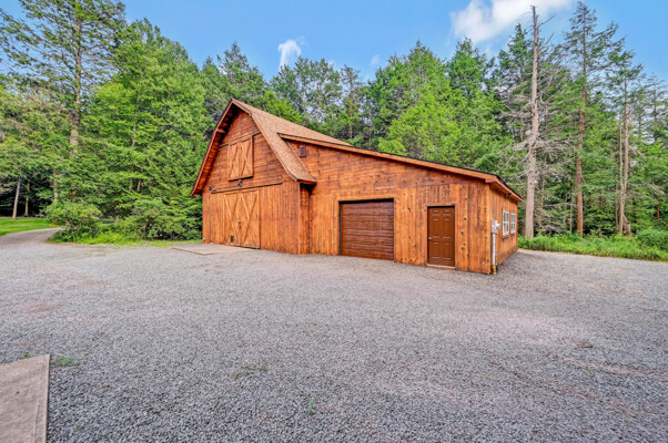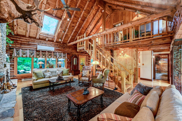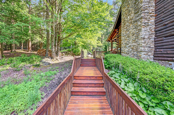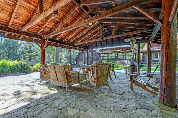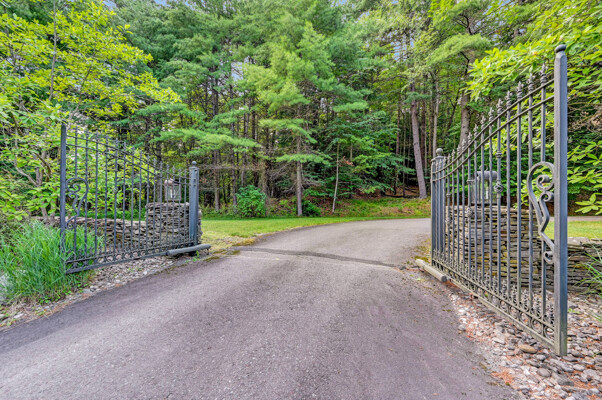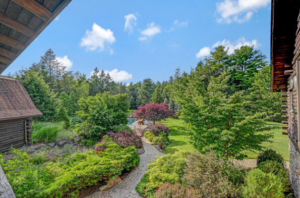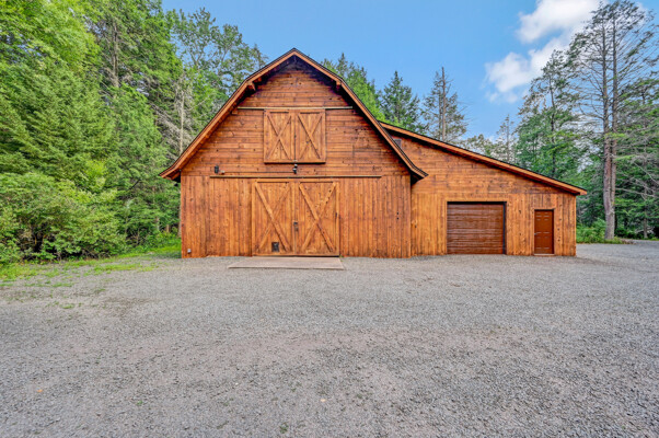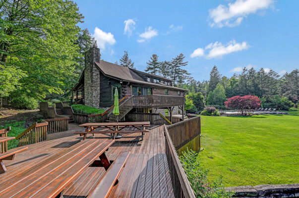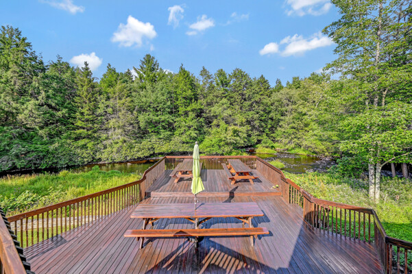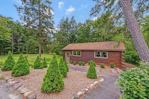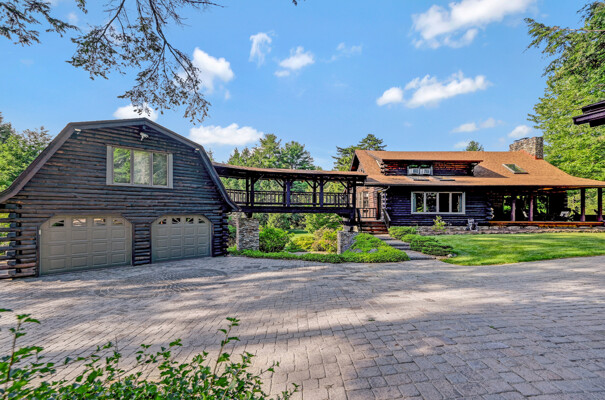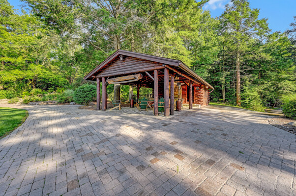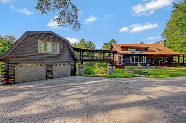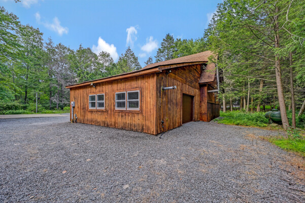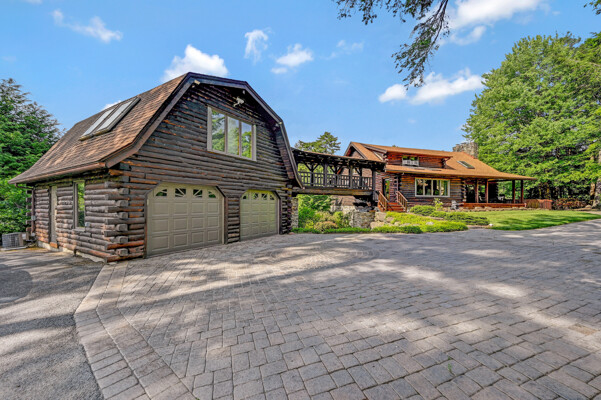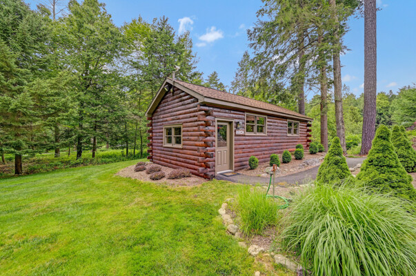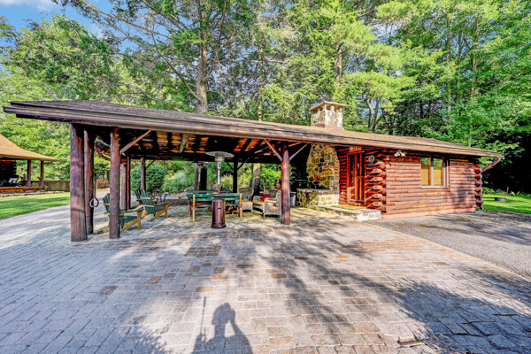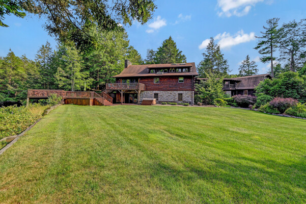 LUXURY 51-ACRE POCONOS RETREAT Situated in the beautiful Pocono Mountains of Pennsylvania just a 2-hour drive from New York and Philadelphia, this property is perfect for personal, corporate, or club retreats. Over 7000 SF features main house, private office, guest chalet, guest cabin, modern wood barn, inground pool, creek, lake, and waterfalls. Log and beam construction, vaulted ceilings, floor to ceiling stone fireplaces, gourmet kitchen, luxurious suites, and meticulous landscaping make this property grand. The heated garages and barn, and generators make it practical. This is a rare opportunity to own a private home in the Pocono Mountains with the rustic elegance of the Great Log Camps and all the comforts of luxury modern living. (See supplement for details on each building.) The main 3, 740 square foot log home features a grand staircase and two-story stone fireplace that draws your eye upward to sweeping log and board ceilings. Buit in 1987, it is a 3-bedroom, 3.5-bedroom wonder. There are two primary suites, one a private aerie over the two-car garage with elegant bath, seating area, and walk-in closet. The other is in the main part of the home. Both overlook multi-level decks, heated, inground pool, sprawling backyard, stream, and private woods. The gourmet kitchen includes a Viking stove, Sub-Zero refrigerator, two dishwashers, and an elegant dining area. The walk-out basement houses laundry, 10-seat bar, and seating area with wood stove. Home includes central air, heat pump and automatic back-up generator. The private office next to, and separate from, the home is elegantly appointed with three rooms and restroom. The original 1940's log fishing cabin from the former Brandywine Fishing Club is an open, 400 SF bedroom and seating area, fireplace, and shower bath. The large, covered stone patio features a original stone barbecue. The guest house, a raised chalet built in 2009, has 3 bedrooms and 2 baths with soaking tub, full kitchen with granite counters, fireplace heated 2-car garage, 1, 344 SF, 6 rooms, 1.5 stories. The front deck overlooks the woods and stream. The modern wood barn, built circa the 1980's, includes a heated, pull-through garage area for your recreational vehicles. Gross total of all of these building comprises more than 7000 square feet of usable space. A few of the numerous outdoor amenities of this gated property include custom bridge, approximately 3/10 of a mile of paved driveway, outdoor lighting and bug zappers, electrified gazebo, stream-side fire pit, decks with expansive views, concrete basketball half-court, hot tub, heated inground pool, open stream-side meadow, fish-stocked stream and lake, waterfall, dock, woods, buried utilities (electric, propane), Generac generator, and professional landscaping with sprinkler system. 19632504511594, 19.9.2.14, bk/pg 2564/6667, 12/21/20 and 19632503406531REF, 19.8.1.6-1, bk/pg 2527/4921, 4/22/2019 (front three acres near gate)