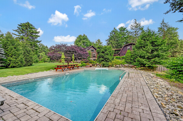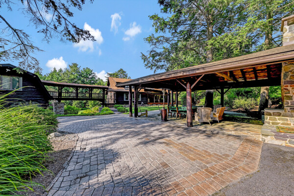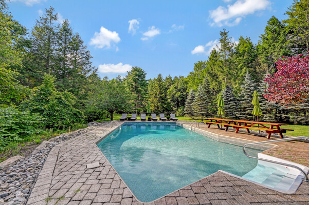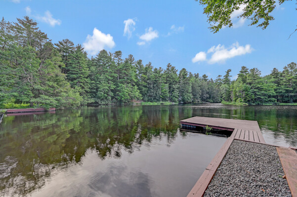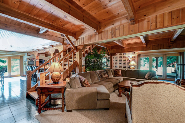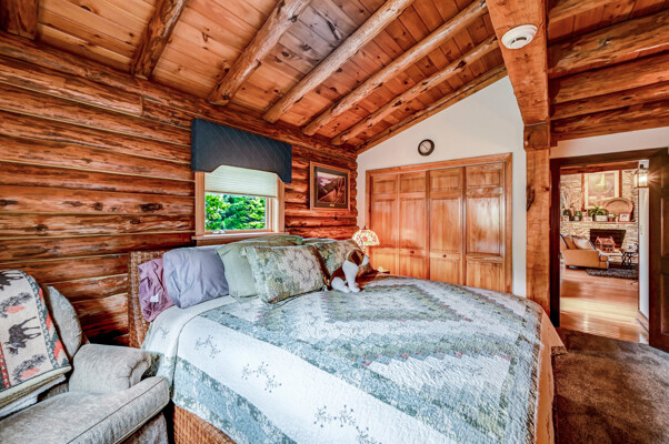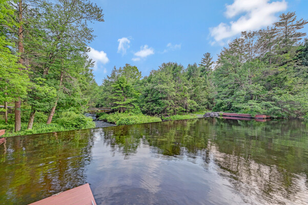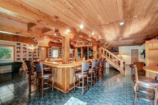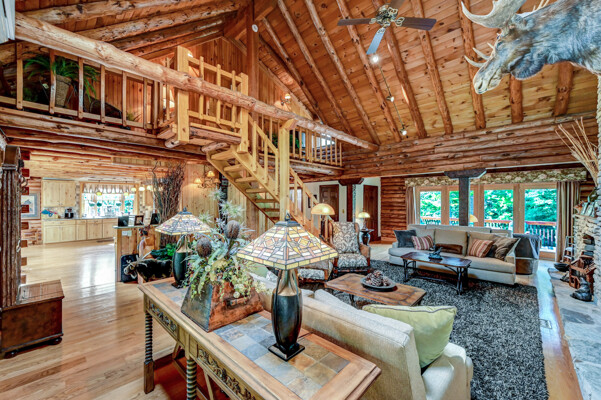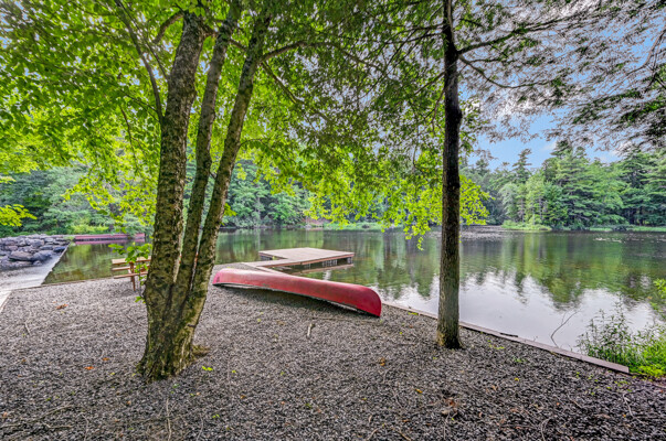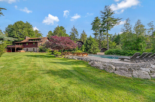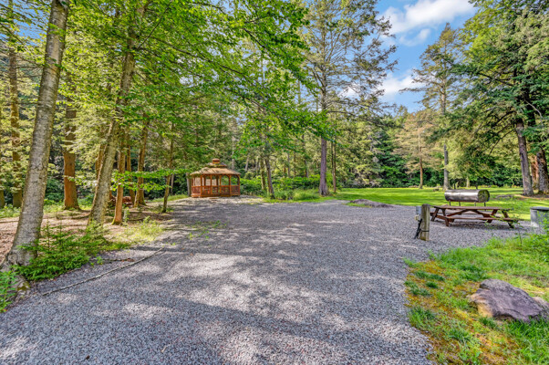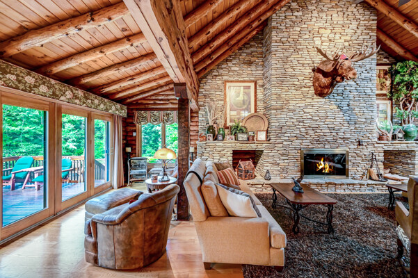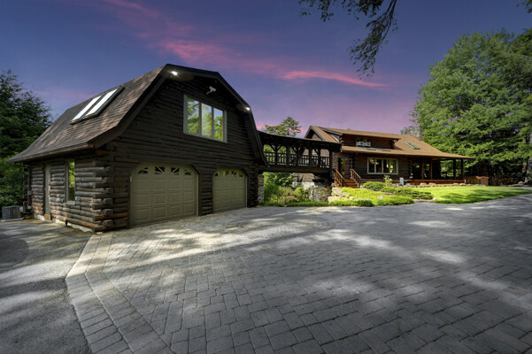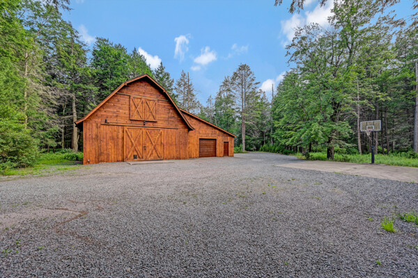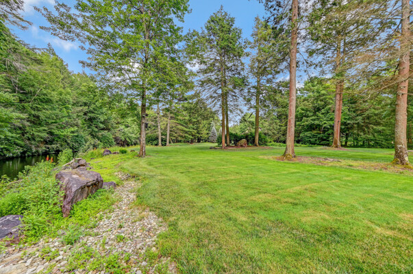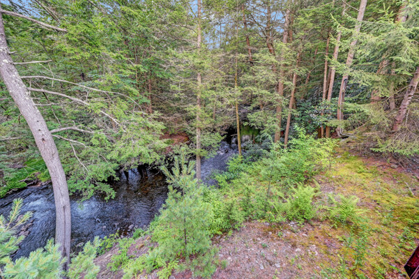 LUXURY 51-ACRE POCONOS RETREAT Situated in the beautiful Pocono Mountains of Pennsylvania just a 2-hour drive from New York and Philadelphia, this property is perfect for personal, corporate, or club retreats. Over 7000 SF features main house, private office, guest chalet, guest cabin, modern wood barn, inground pool, creek, lake, and waterfalls. Log and beam construction, vaulted ceilings, floor to ceiling stone fireplaces, gourmet kitchen, luxurious suites, and meticulous landscaping make this property grand. The heated garages and barn, and generators make it practical. This is a rare opportunity to own a private home in the Pocono Mountains with the rustic elegance of the Great Log Camps and all the comforts of luxury modern living. (See supplement for details on each building.) The main 3, 740 square foot log home features a grand staircase and two-story stone fireplace that draws your eye upward to sweeping log and board ceilings. Buit in 1987, it is a 3-bedroom, 3.5-bedroom wonder. There are two primary suites, one a private aerie over the two-car garage with elegant bath, seating area, and walk-in closet. The other is in the main part of the home. Both overlook multi-level decks, heated, inground pool, sprawling backyard, stream, and private woods. The gourmet kitchen includes a Viking stove, Sub-Zero refrigerator, two dishwashers, and an elegant dining area. The walk-out basement houses laundry, 10-seat bar, and seating area with wood stove. Home includes central air, heat pump and automatic back-up generator. The private office next to, and separate from, the home is elegantly appointed with three rooms and restroom. The original 1940's log fishing cabin from the former Brandywine Fishing Club is an open, 400 SF bedroom and seating area, fireplace, and shower bath. The large, covered stone patio features a original stone barbecue. The guest house, a raised chalet built in 2009, has 3 bedrooms and 2 baths with soaking tub, full kitchen with granite counters, fireplace heated 2-car garage, 1, 344 SF, 6 rooms, 1.5 stories. The front deck overlooks the woods and stream. The modern wood barn, built circa the 1980's, includes a heated, pull-through garage area for your recreational vehicles. Gross total of all of these building comprises more than 7000 square feet of usable space. A few of the numerous outdoor amenities of this gated property include custom bridge, approximately 3/10 of a mile of paved driveway, outdoor lighting and bug zappers, electrified gazebo, stream-side fire pit, decks with expansive views, concrete basketball half-court, hot tub, heated inground pool, open stream-side meadow, fish-stocked stream and lake, waterfall, dock, woods, buried utilities (electric, propane), Generac generator, and professional landscaping with sprinkler system. 19632504511594, 19.9.2.14, bk/pg 2564/6667, 12/21/20 and 19632503406531REF, 19.8.1.6-1, bk/pg 2527/4921, 4/22/2019 (front three acres near gate)