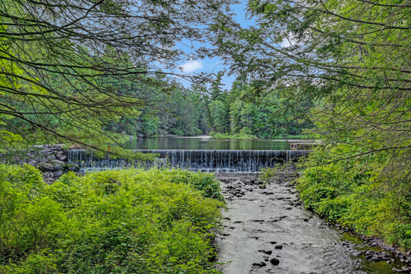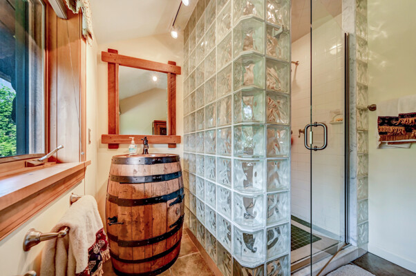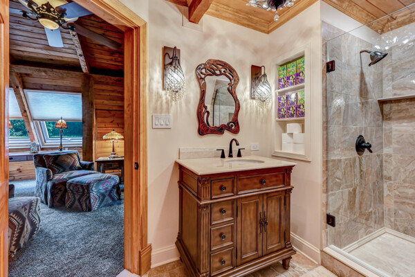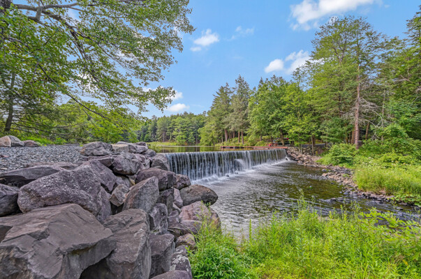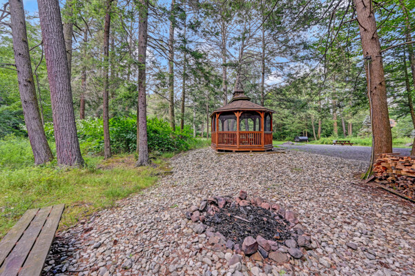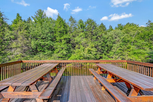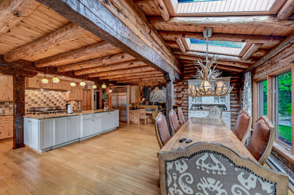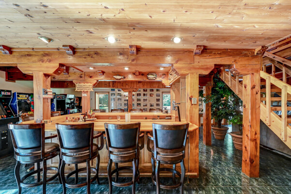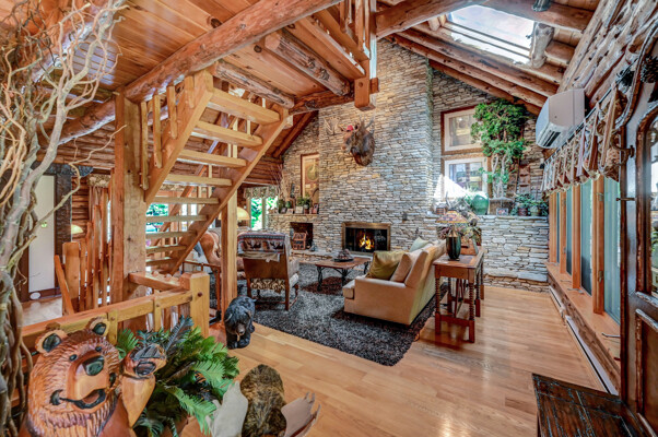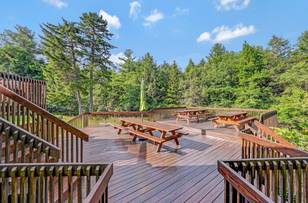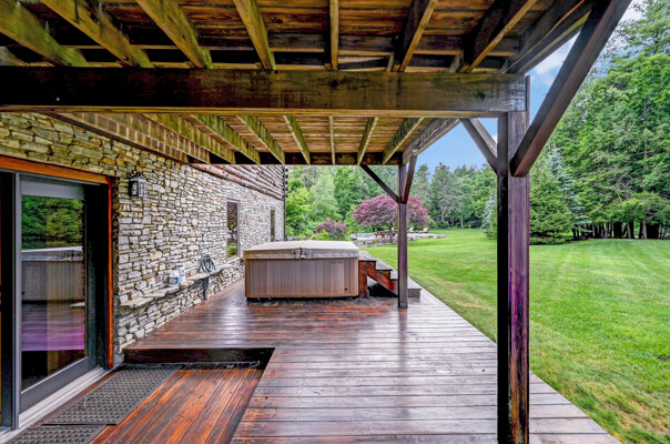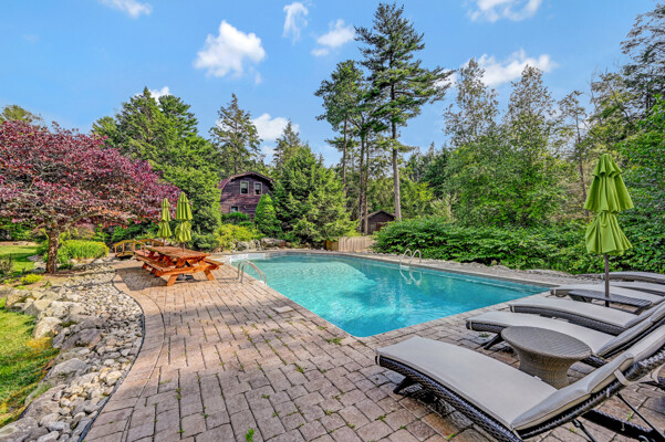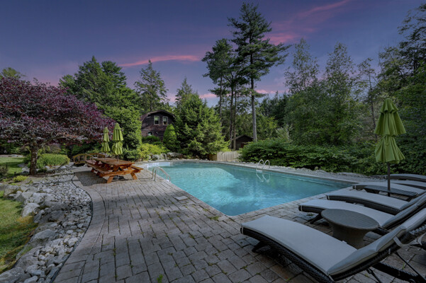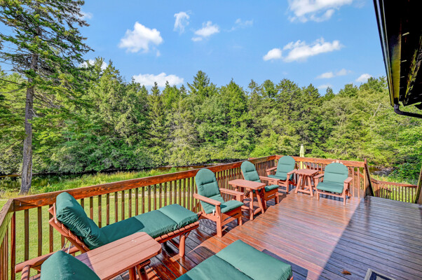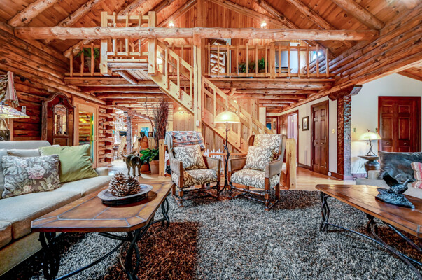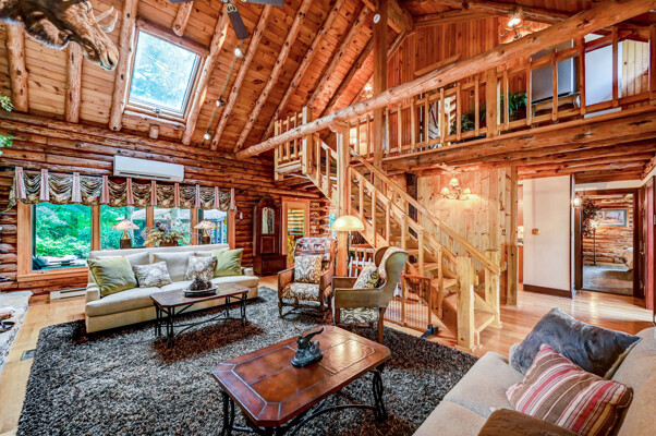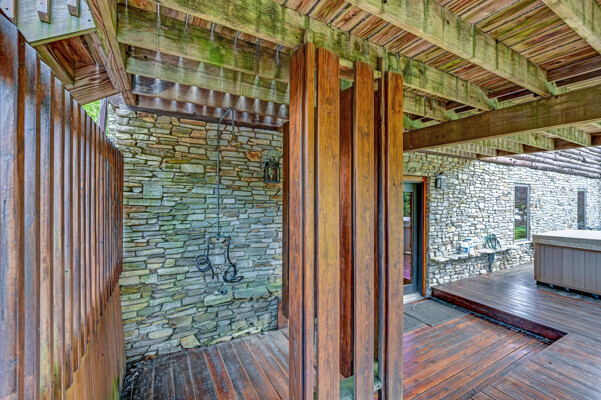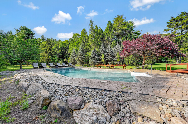 LUXURY 51-ACRE POCONOS RETREAT Situated in the beautiful Pocono Mountains of Pennsylvania just a 2-hour drive from New York and Philadelphia, this property is perfect for personal, corporate, or club retreats. Over 7000 SF features main house, private office, guest chalet, guest cabin, modern wood barn, inground pool, creek, lake, and waterfalls. Log and beam construction, vaulted ceilings, floor to ceiling stone fireplaces, gourmet kitchen, luxurious suites, and meticulous landscaping make this property grand. The heated garages and barn, and generators make it practical. This is a rare opportunity to own a private home in the Pocono Mountains with the rustic elegance of the Great Log Camps and all the comforts of luxury modern living. (See supplement for details on each building.) The main 3, 740 square foot log home features a grand staircase and two-story stone fireplace that draws your eye upward to sweeping log and board ceilings. Buit in 1987, it is a 3-bedroom, 3.5-bedroom wonder. There are two primary suites, one a private aerie over the two-car garage with elegant bath, seating area, and walk-in closet. The other is in the main part of the home. Both overlook multi-level decks, heated, inground pool, sprawling backyard, stream, and private woods. The gourmet kitchen includes a Viking stove, Sub-Zero refrigerator, two dishwashers, and an elegant dining area. The walk-out basement houses laundry, 10-seat bar, and seating area with wood stove. Home includes central air, heat pump and automatic back-up generator. The private office next to, and separate from, the home is elegantly appointed with three rooms and restroom. The original 1940's log fishing cabin from the former Brandywine Fishing Club is an open, 400 SF bedroom and seating area, fireplace, and shower bath. The large, covered stone patio features a original stone barbecue. The guest house, a raised chalet built in 2009, has 3 bedrooms and 2 baths with soaking tub, full kitchen with granite counters, fireplace heated 2-car garage, 1, 344 SF, 6 rooms, 1.5 stories. The front deck overlooks the woods and stream. The modern wood barn, built circa the 1980's, includes a heated, pull-through garage area for your recreational vehicles. Gross total of all of these building comprises more than 7000 square feet of usable space. A few of the numerous outdoor amenities of this gated property include custom bridge, approximately 3/10 of a mile of paved driveway, outdoor lighting and bug zappers, electrified gazebo, stream-side fire pit, decks with expansive views, concrete basketball half-court, hot tub, heated inground pool, open stream-side meadow, fish-stocked stream and lake, waterfall, dock, woods, buried utilities (electric, propane), Generac generator, and professional landscaping with sprinkler system. 19632504511594, 19.9.2.14, bk/pg 2564/6667, 12/21/20 and 19632503406531REF, 19.8.1.6-1, bk/pg 2527/4921, 4/22/2019 (front three acres near gate)
