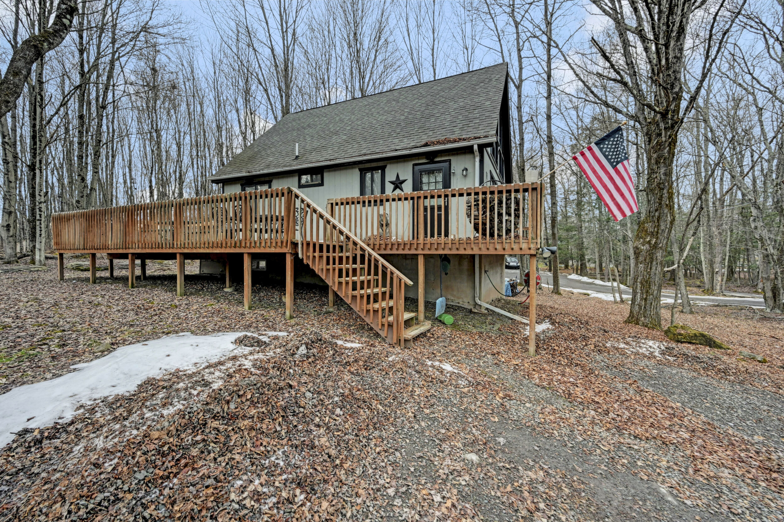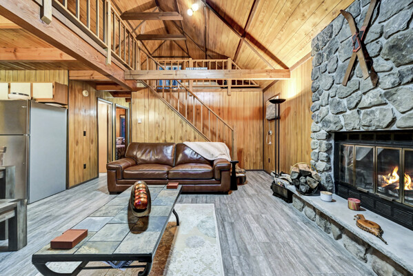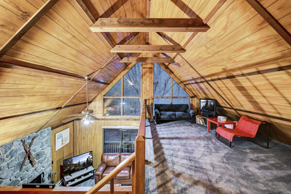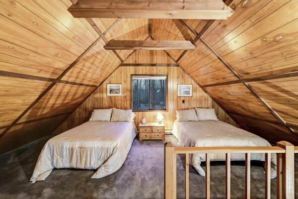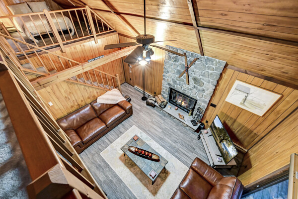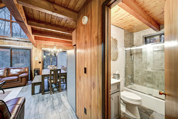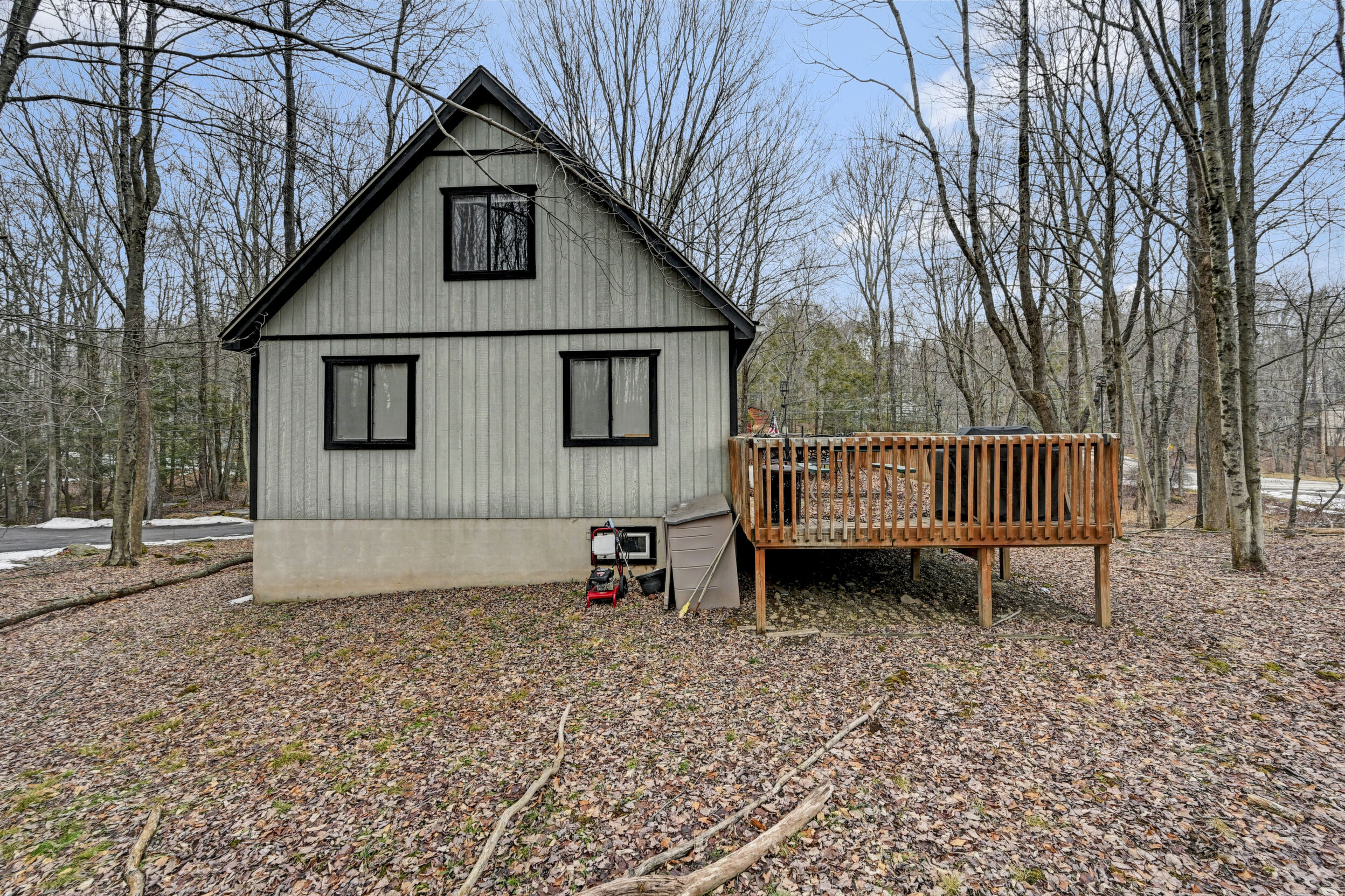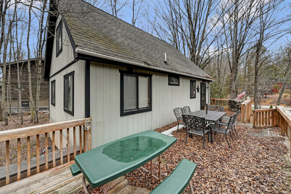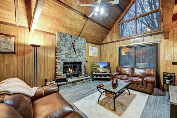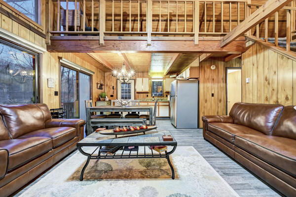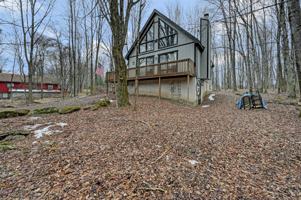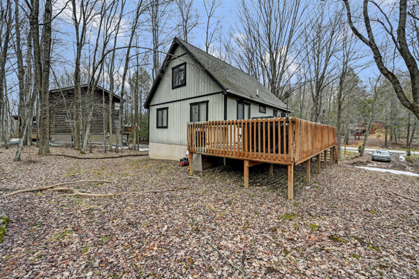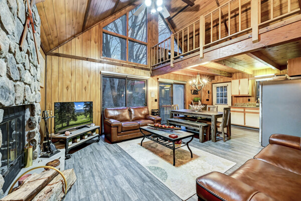 When you think of the perfect mountain chalet--this is it!Located in The Hideout, a four-season, amenity-filled community in the Northern Poconos, just two hours from the NYC, NJ, and Philadelphia metro areas, this chalet offers the ideal blend of location, charm, and lifestyle. Situated in the highly sought-after ''Golden Triangle,'' the home is a short distance to Deerfield Lake, a peaceful 24-acre non-powerboating lake, and conveniently close to other top amenities including the ski hill, art center, and Roamingwood Lake, where you'll find the beach, pickleball courts, main lodge, and tiki bar.Set on a wooded lot, the home features a large deck perfect for enjoying the natural surroundings. Inside, a spacious 3/4 loft provides excellent additional sleeping space and overlooks the living room below, enhancing the classic chalet feel. The living room showcases a beautiful stone fireplace, high ceilings, and an open layout that highlights the loft above. Tile flooring runs throughout the main level, which also includes a beautifully updated full bathroom.The finished walk-out lower level offers even more living space with tile flooring throughout and a flexible, open layout that includes a den area, large recreation space, an additional den/game room, and a second full bathroom.This is mountain living at its best--perfect as a getaway, investment, or full-time retreat in one of the Poconos' most desirable communities.