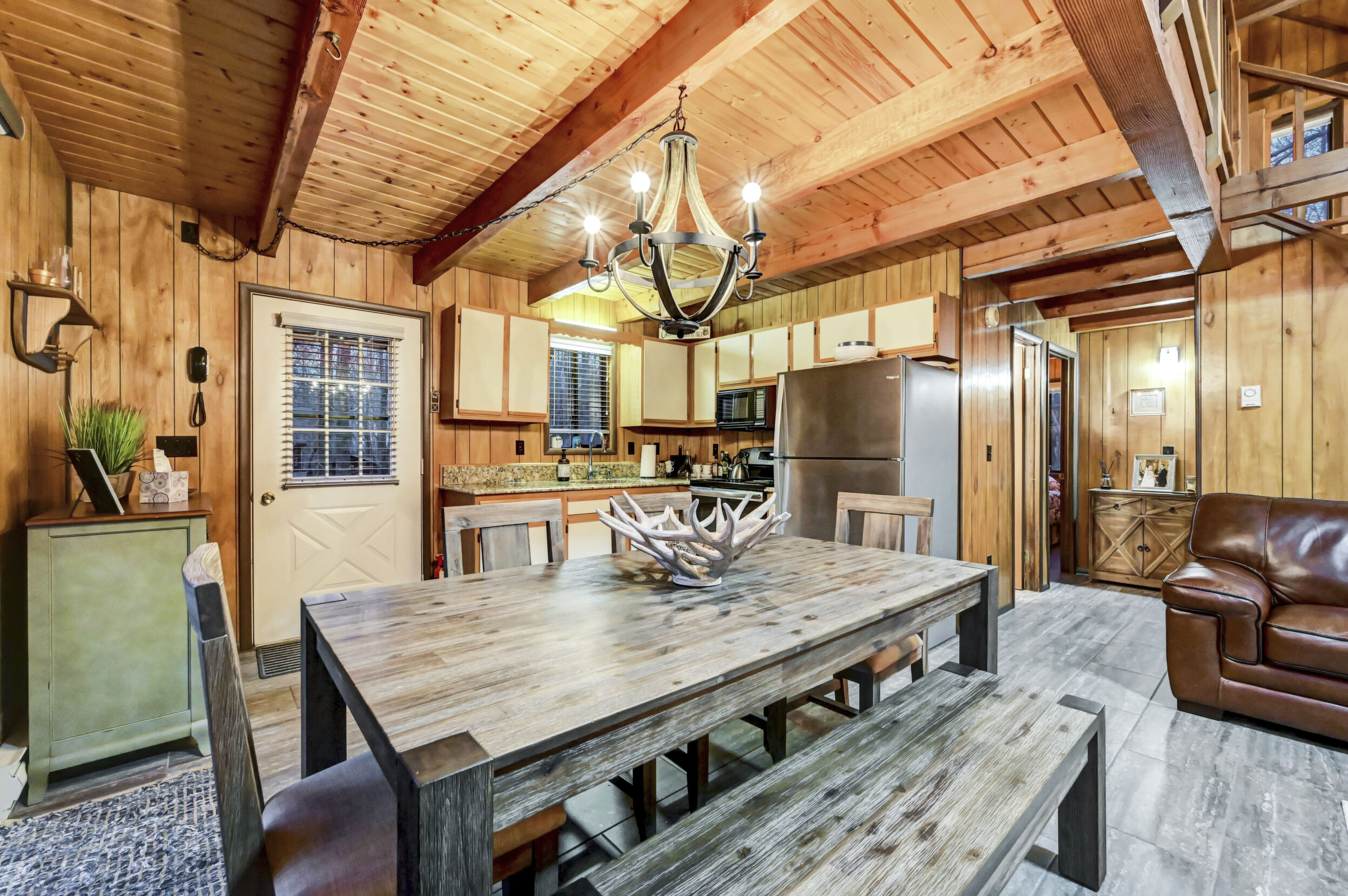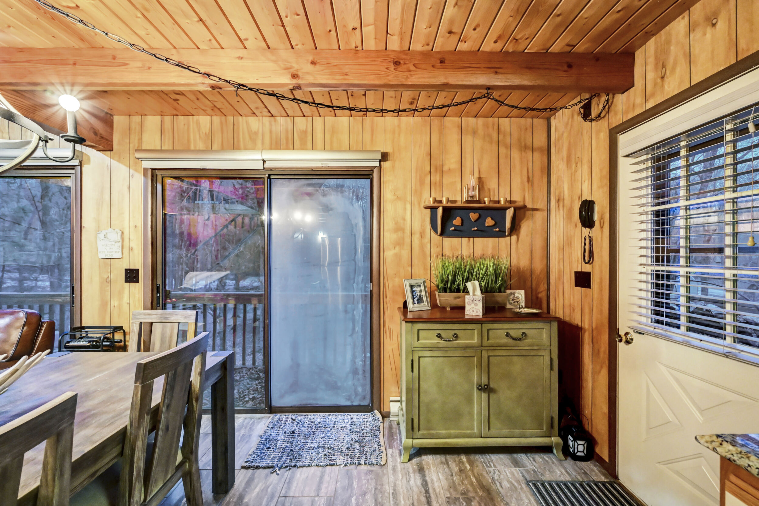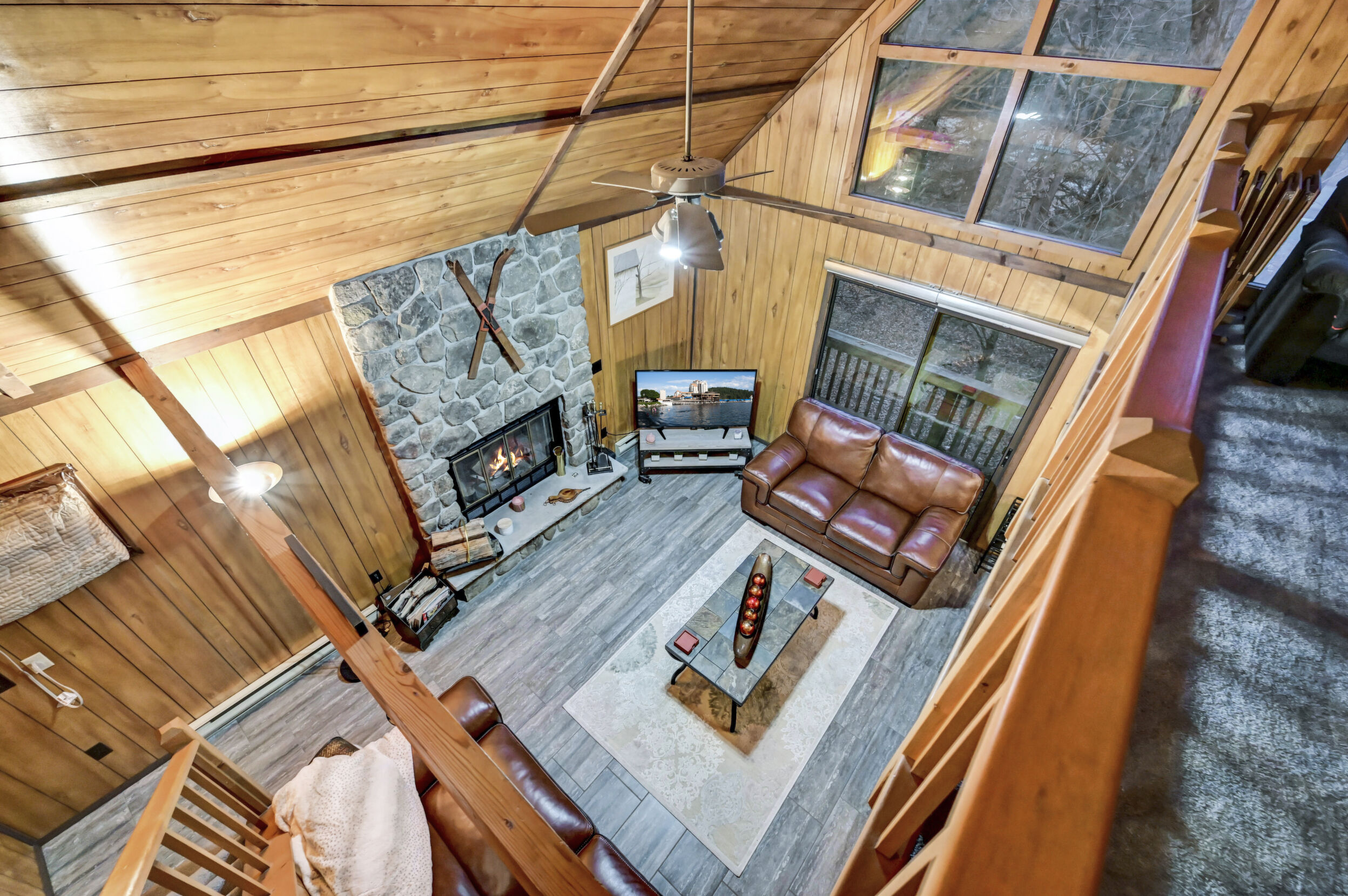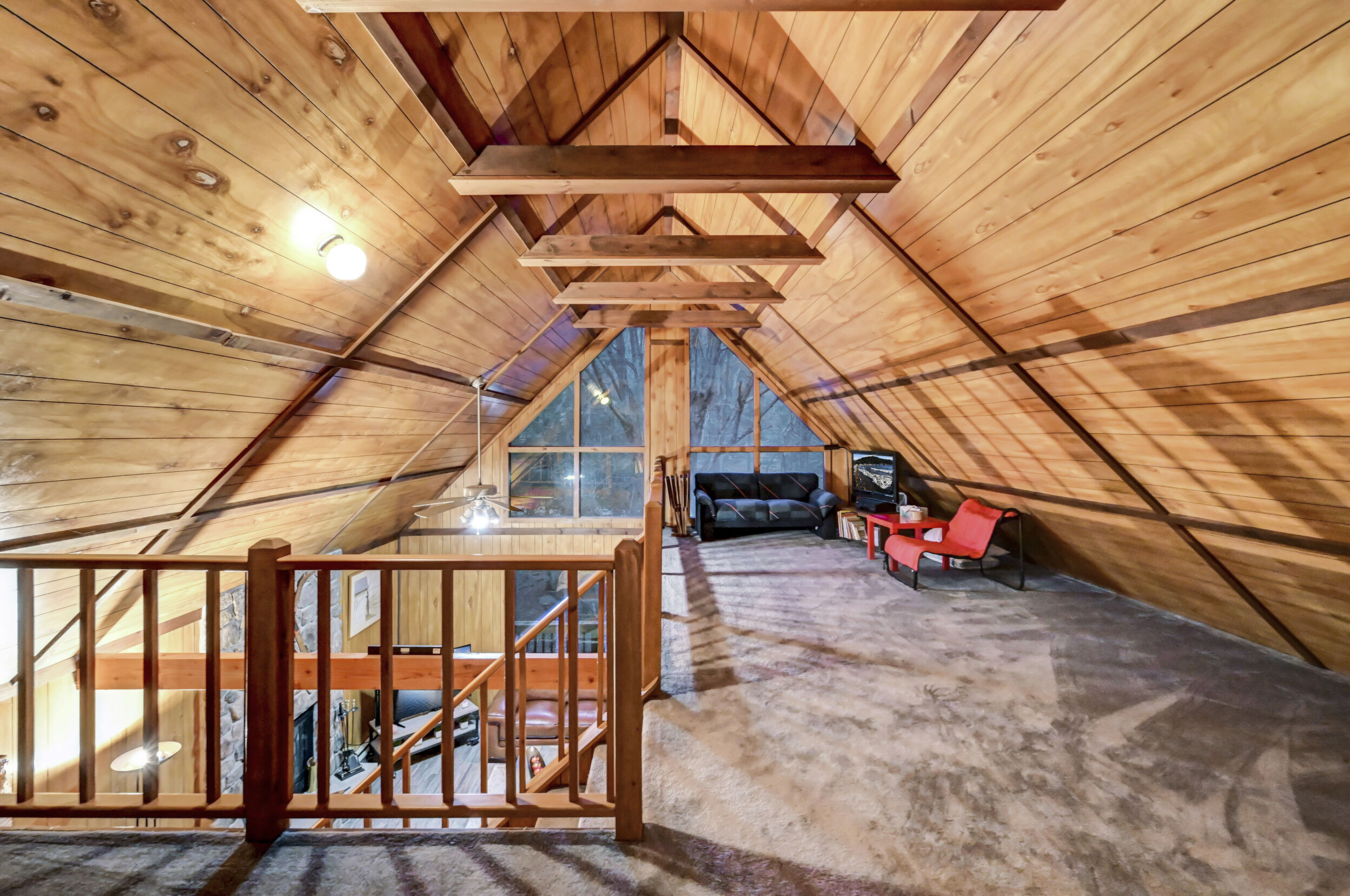 When you think of the perfect mountain chalet--this is it!Located in The Hideout, a four-season, amenity-filled community in the Northern Poconos, just two hours from the NYC, NJ, and Philadelphia metro areas, this chalet offers the ideal blend of location, charm, and lifestyle. Situated in the highly sought-after ''Golden Triangle,'' the home is a short distance to Deerfield Lake, a peaceful 24-acre non-powerboating lake, and conveniently close to other top amenities including the ski hill, art center, and Roamingwood Lake, where you'll find the beach, pickleball courts, main lodge, and tiki bar.Set on a wooded lot, the home features a large deck perfect for enjoying the natural surroundings. Inside, a spacious 3/4 loft provides excellent additional sleeping space and overlooks the living room below, enhancing the classic chalet feel. The living room showcases a beautiful stone fireplace, high ceilings, and an open layout that highlights the loft above. Tile flooring runs throughout the main level, which also includes a beautifully updated full bathroom.The finished walk-out lower level offers even more living space with tile flooring throughout and a flexible, open layout that includes a den area, large recreation space, an additional den/game room, and a second full bathroom.This is mountain living at its best--perfect as a getaway, investment, or full-time retreat in one of the Poconos' most desirable communities.
