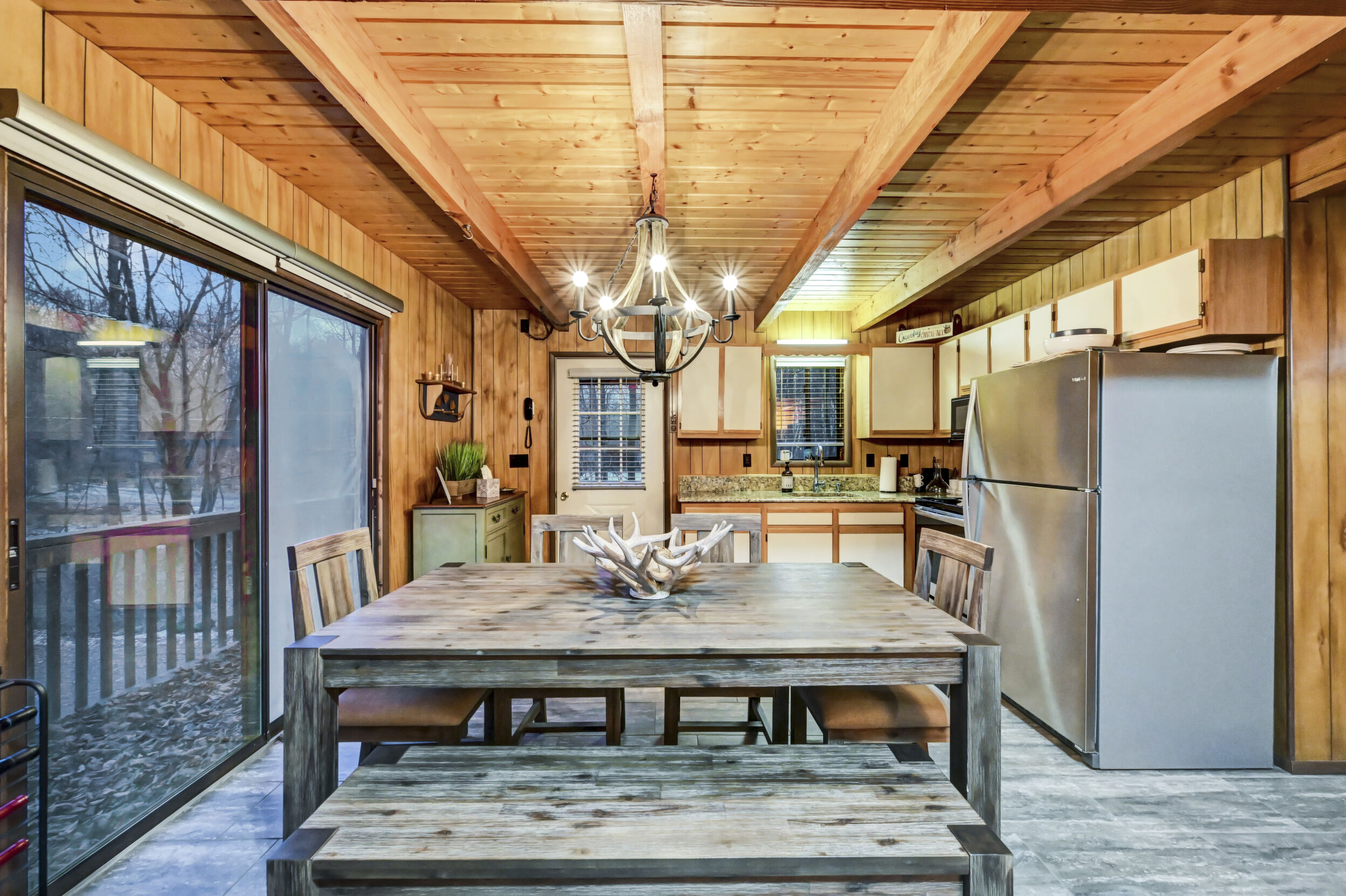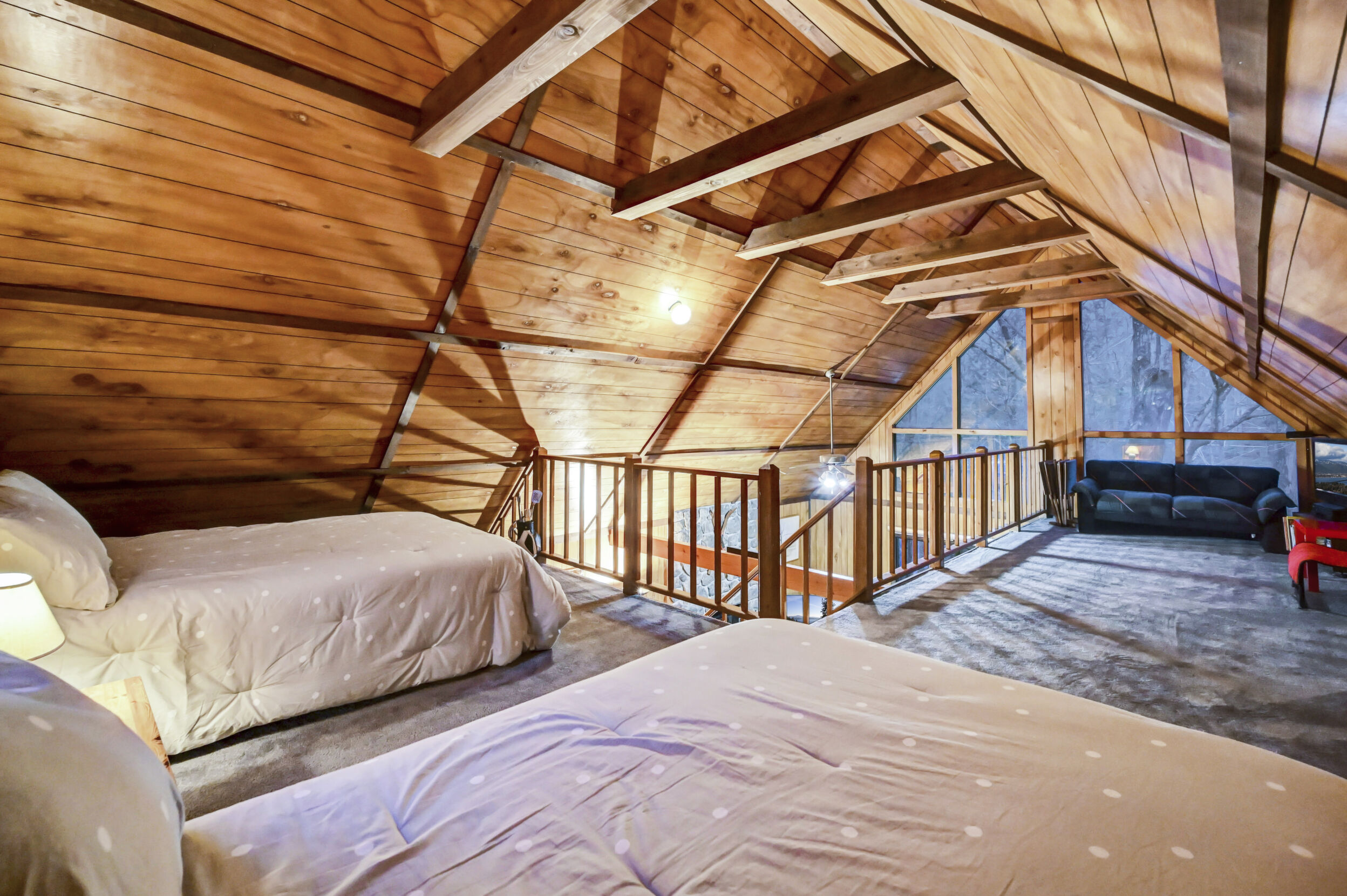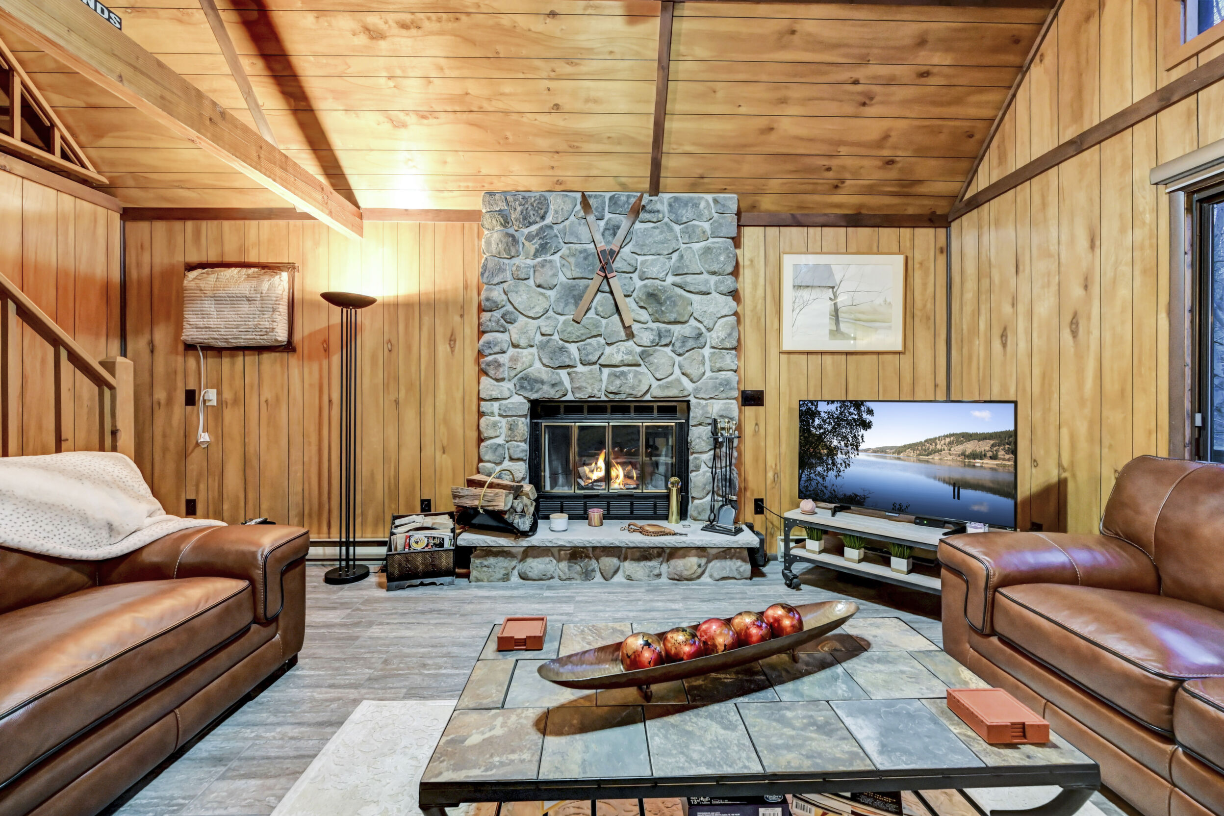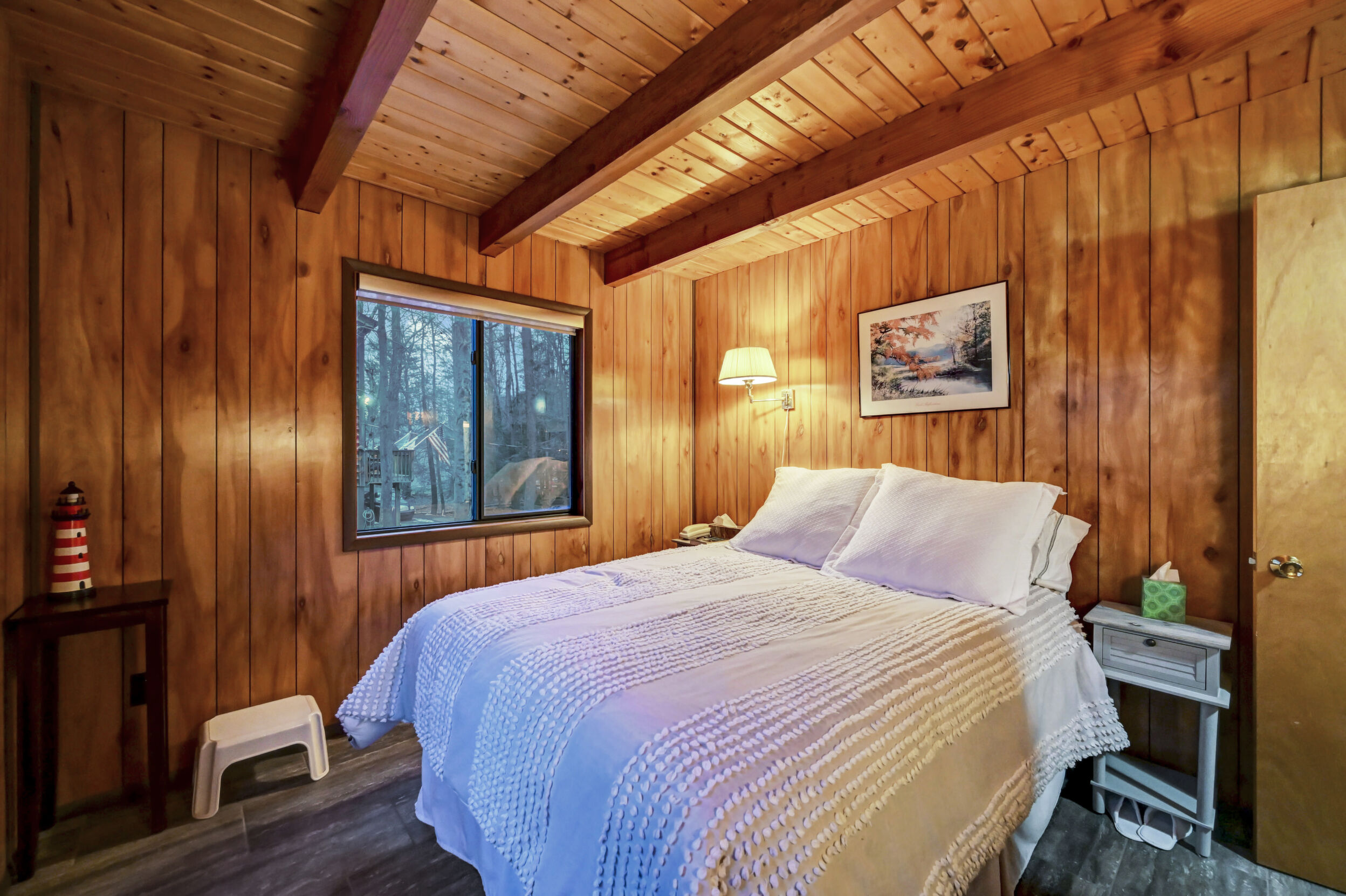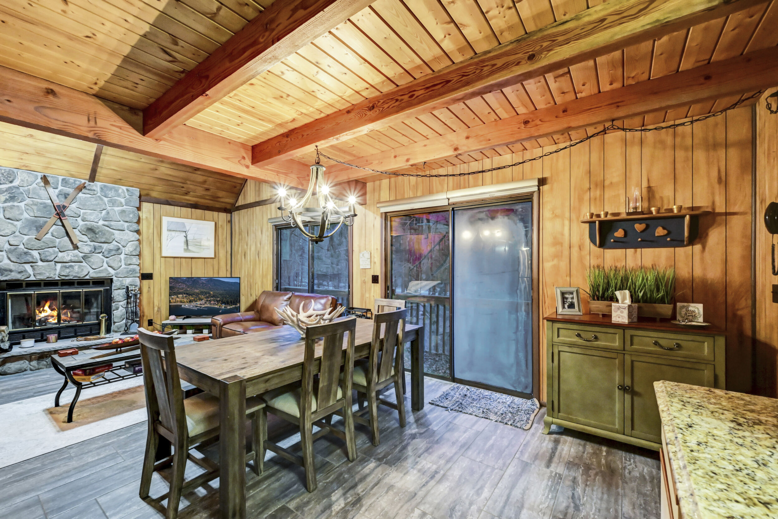 When you think of the perfect mountain chalet--this is it!Located in The Hideout, a four-season, amenity-filled community in the Northern Poconos, just two hours from the NYC, NJ, and Philadelphia metro areas, this chalet offers the ideal blend of location, charm, and lifestyle. Situated in the highly sought-after ''Golden Triangle,'' the home is a short distance to Deerfield Lake, a peaceful 24-acre non-powerboating lake, and conveniently close to other top amenities including the ski hill, art center, and Roamingwood Lake, where you'll find the beach, pickleball courts, main lodge, and tiki bar.Set on a wooded lot, the home features a large deck perfect for enjoying the natural surroundings. Inside, a spacious 3/4 loft provides excellent additional sleeping space and overlooks the living room below, enhancing the classic chalet feel. The living room showcases a beautiful stone fireplace, high ceilings, and an open layout that highlights the loft above. Tile flooring runs throughout the main level, which also includes a beautifully updated full bathroom.The finished walk-out lower level offers even more living space with tile flooring throughout and a flexible, open layout that includes a den area, large recreation space, an additional den/game room, and a second full bathroom.This is mountain living at its best--perfect as a getaway, investment, or full-time retreat in one of the Poconos' most desirable communities.