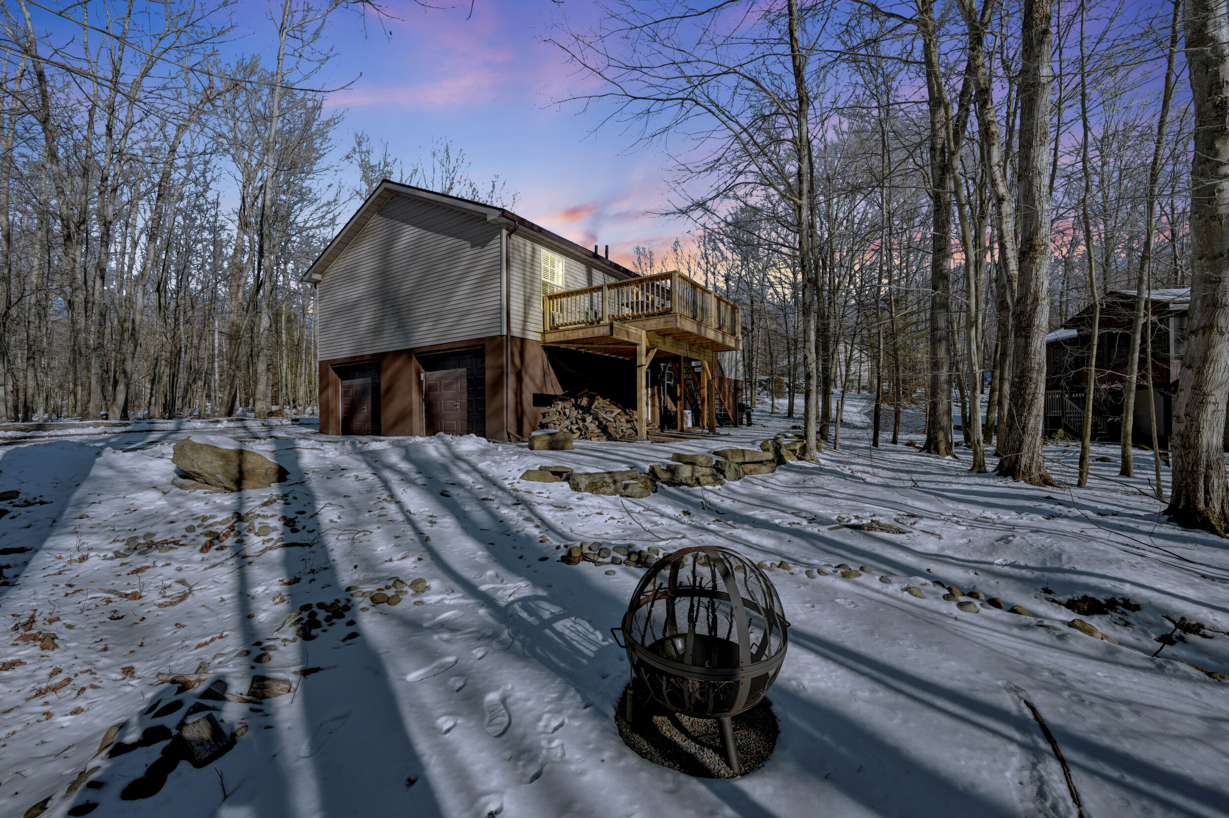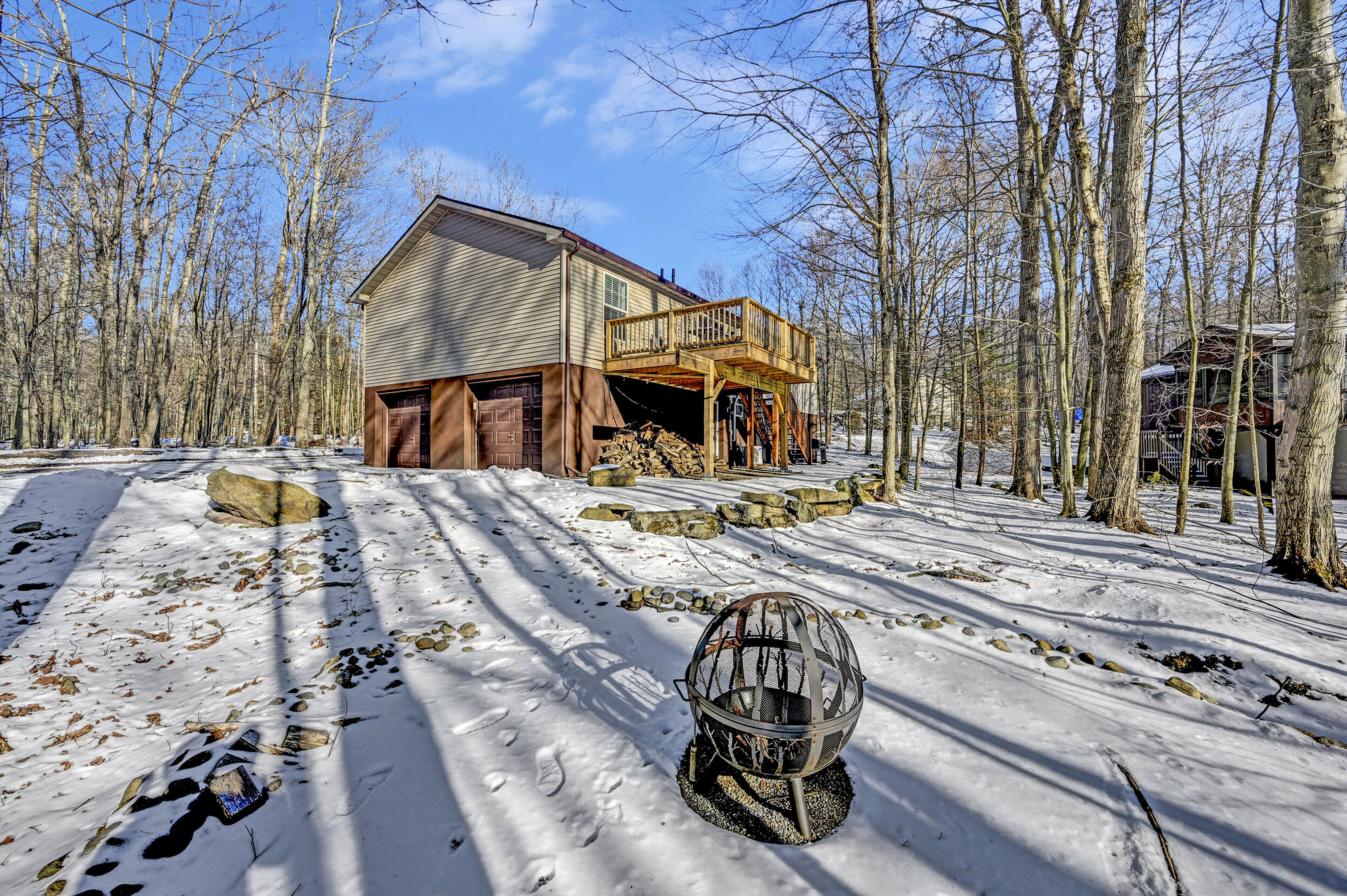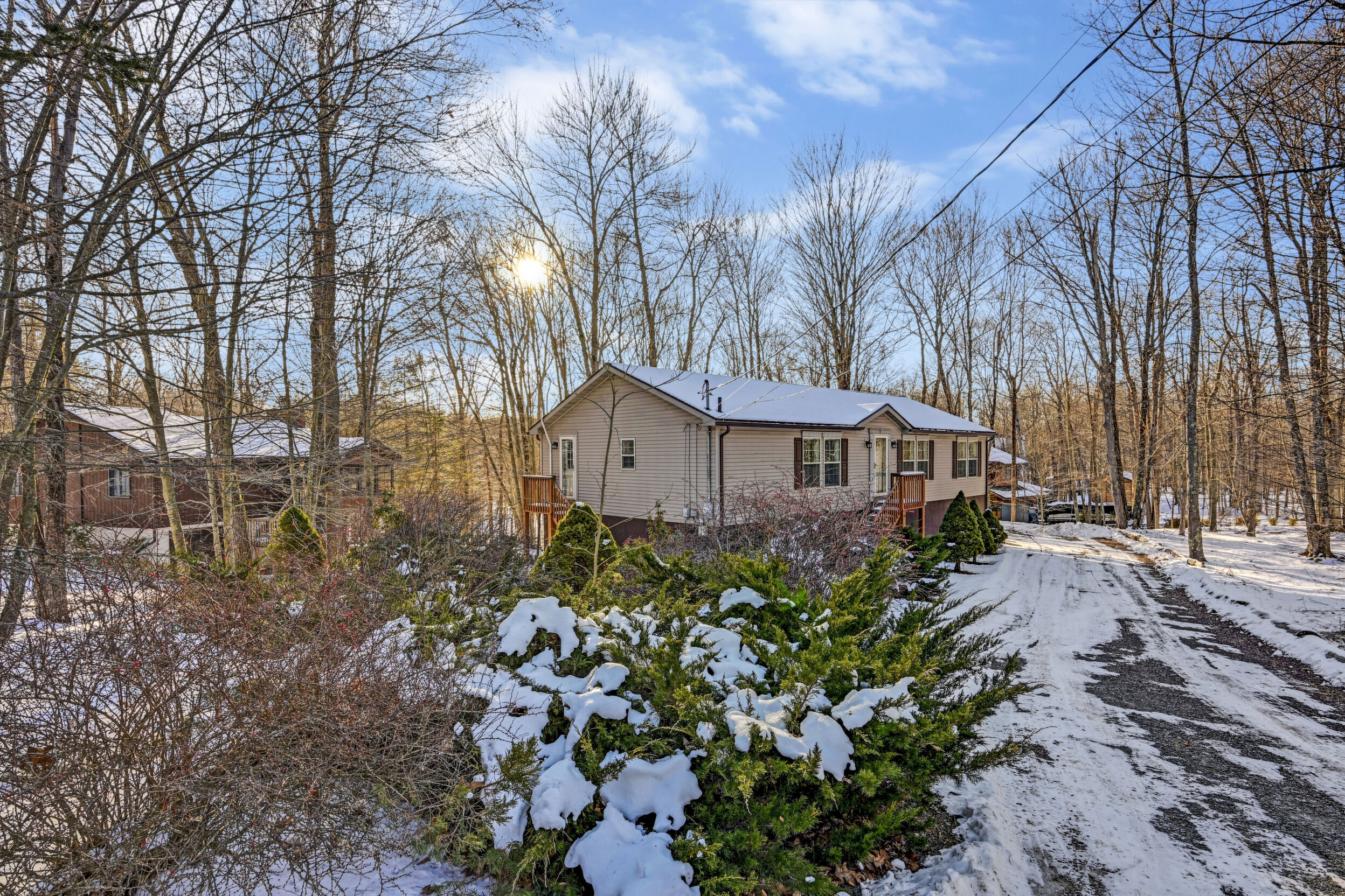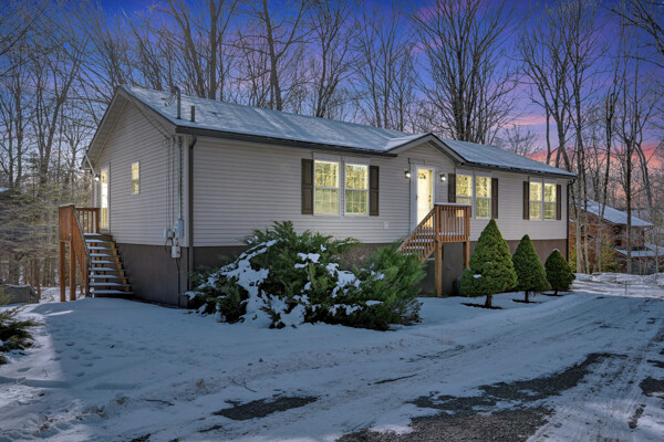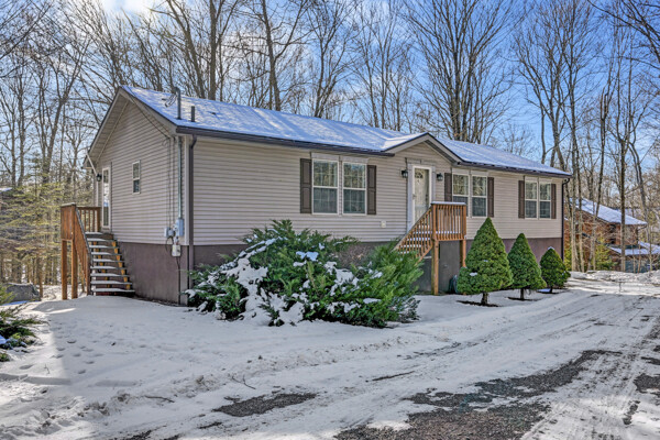 House + Adjacent Lot -- a true ''hole-in-one'' opportunity in The Hideout!Located in The Hideout, a four-season, amenity-rich, gated community in the Northern Poconos, this 4-bedroom, 3-bath home sits on the first green of the golf course with sweeping fairway views and stunning sunsets. The adjacent corner lot is included - a flat, wooded parcel perfect for future building, generational living, or added privacy.Step inside to bright, airy, open-concept living spaces with a modern kitchen featuring gorgeous, unending counter space, storage, and seamless flow into the dining and living areas--perfect for entertaining - a chefs delight! Ceiling fans, generous closets, and thoughtful upgrades enhance comfort throughout the home.Outdoor living is exceptional with an expansive deck and firepit overlooking the golf course, ideal for morning coffee, sunset dinners, or evenings under the stars. A two-car attached garage adds convenience.Thought that was all? BONUS, there's more! This home is within walking distance of the community recreation building, woodworking studio, golf pro shop, and clubhouse/bar, perfect for Sunday brunch or hosting friends and family. Residents also enjoy lakes, beaches, pools, hiking, tennis/pickleball, skiing, and year-round activities. Imagine walking to indoor Pickleball courts, how dreamy!Offered turnkey and fully furnished, this rare offering of home with views plus adjacent, corner land lot won't last long.*figures for tax and fees reflect offering of two lots.
