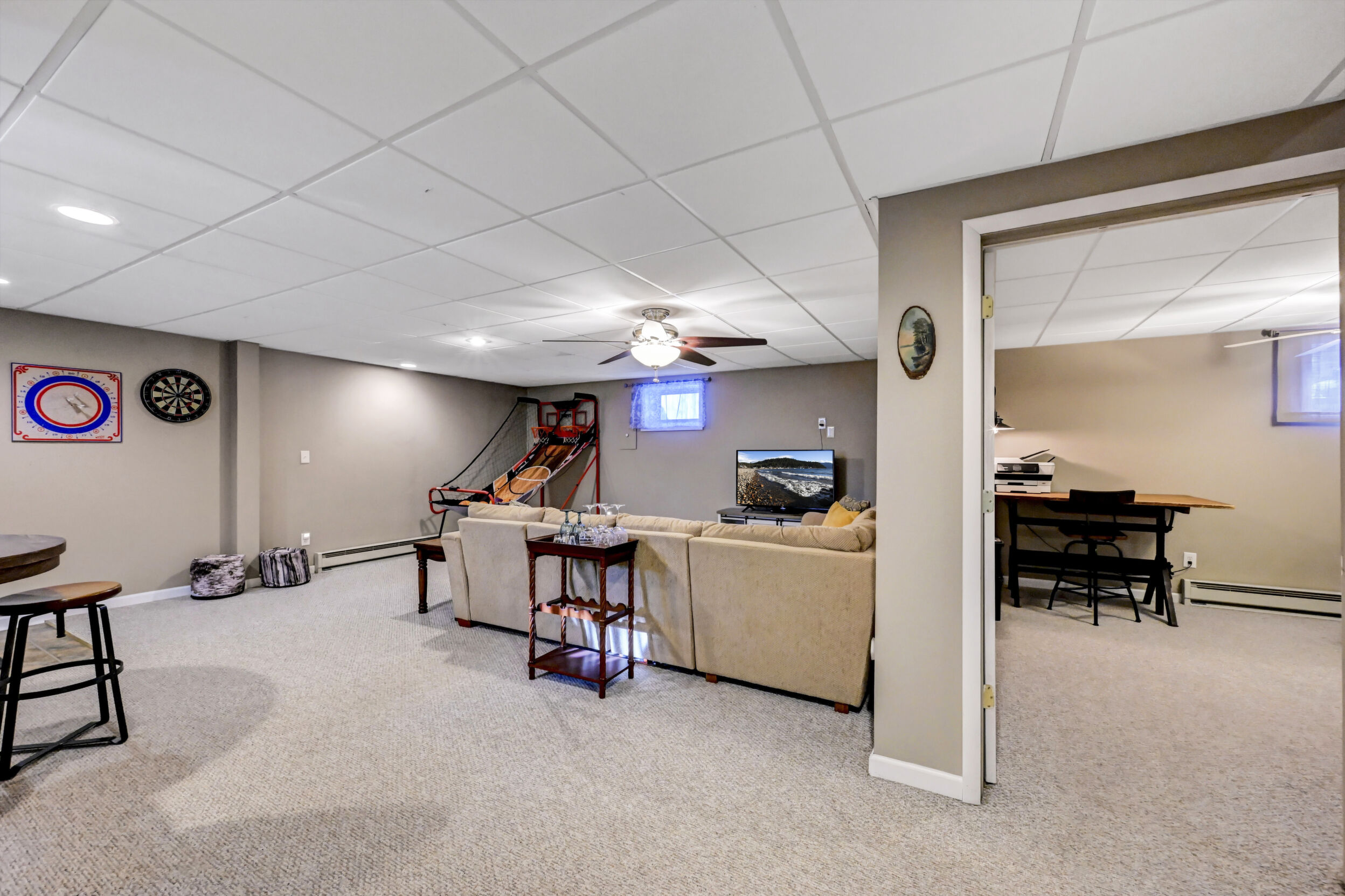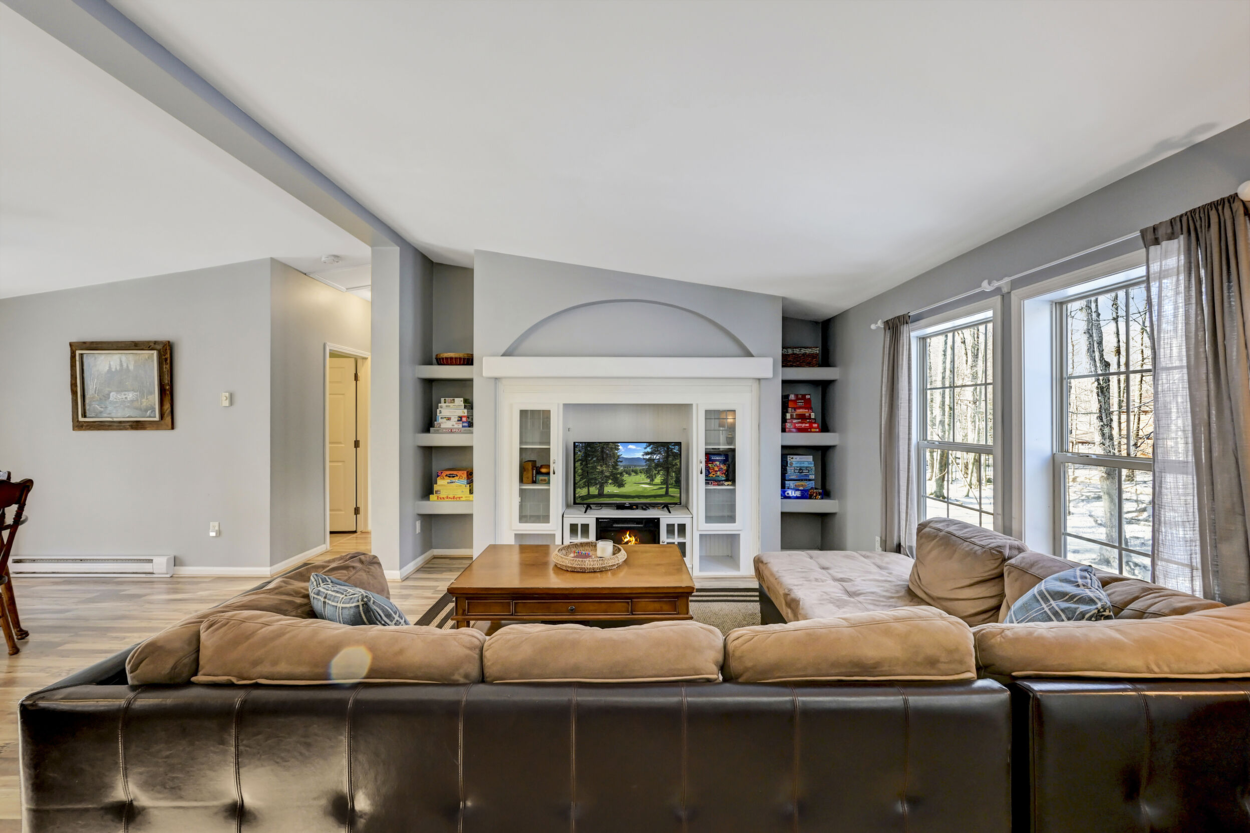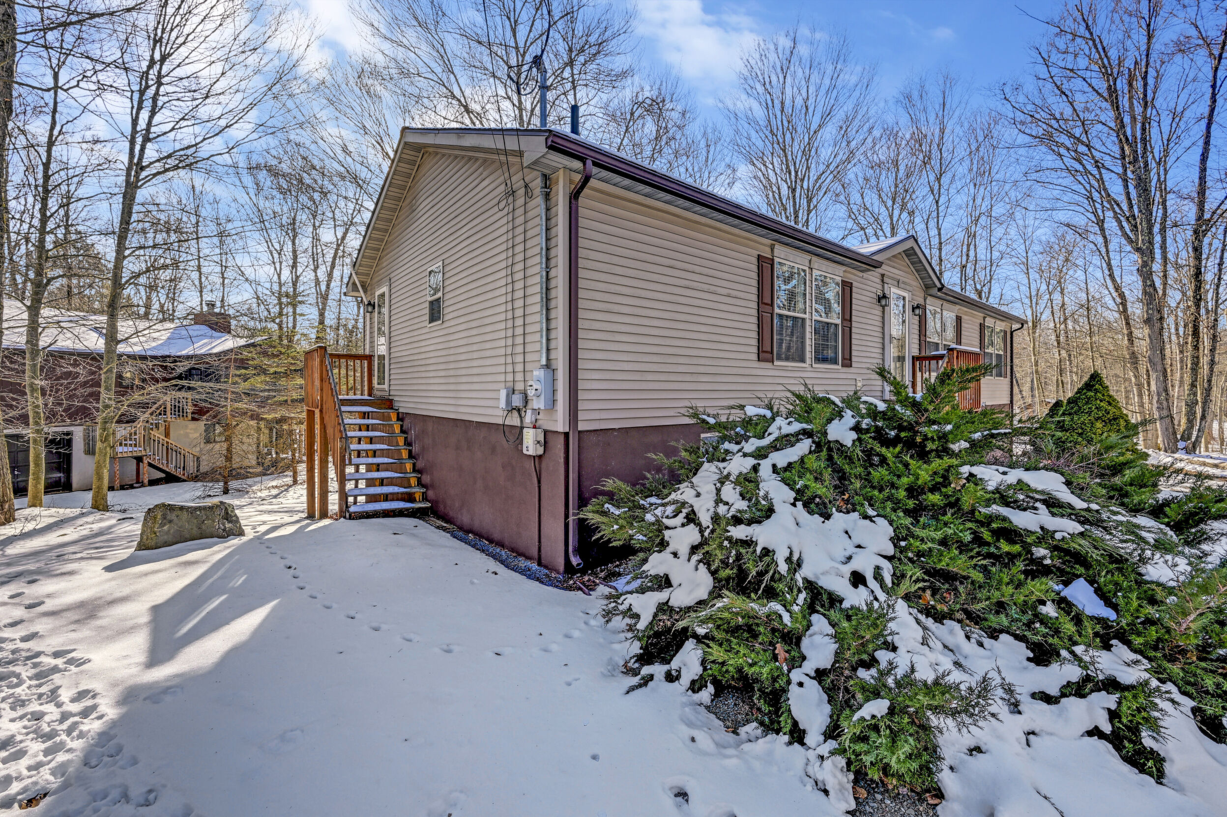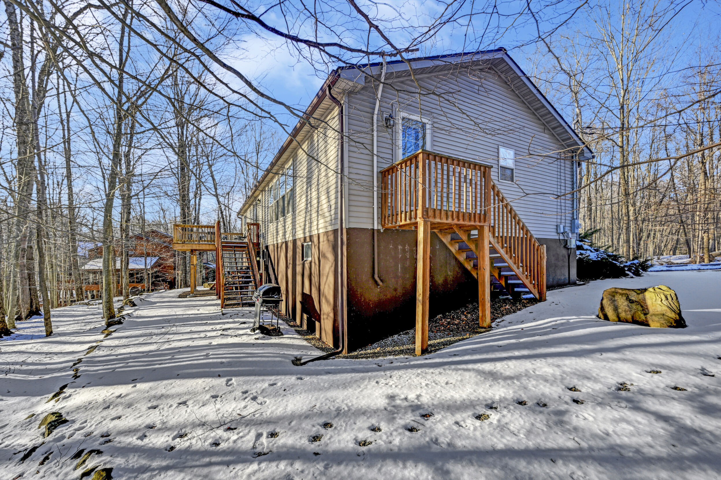 House + Adjacent Lot -- a true ''hole-in-one'' opportunity in The Hideout!Located in The Hideout, a four-season, amenity-rich, gated community in the Northern Poconos, this 4-bedroom, 3-bath home sits on the first green of the golf course with sweeping fairway views and stunning sunsets. The adjacent corner lot is included - a flat, wooded parcel perfect for future building, generational living, or added privacy.Step inside to bright, airy, open-concept living spaces with a modern kitchen featuring gorgeous, unending counter space, storage, and seamless flow into the dining and living areas--perfect for entertaining - a chefs delight! Ceiling fans, generous closets, and thoughtful upgrades enhance comfort throughout the home.Outdoor living is exceptional with an expansive deck and firepit overlooking the golf course, ideal for morning coffee, sunset dinners, or evenings under the stars. A two-car attached garage adds convenience.Thought that was all? BONUS, there's more! This home is within walking distance of the community recreation building, woodworking studio, golf pro shop, and clubhouse/bar, perfect for Sunday brunch or hosting friends and family. Residents also enjoy lakes, beaches, pools, hiking, tennis/pickleball, skiing, and year-round activities. Imagine walking to indoor Pickleball courts, how dreamy!Offered turnkey and fully furnished, this rare offering of home with views plus adjacent, corner land lot won't last long.*figures for tax and fees reflect offering of two lots.