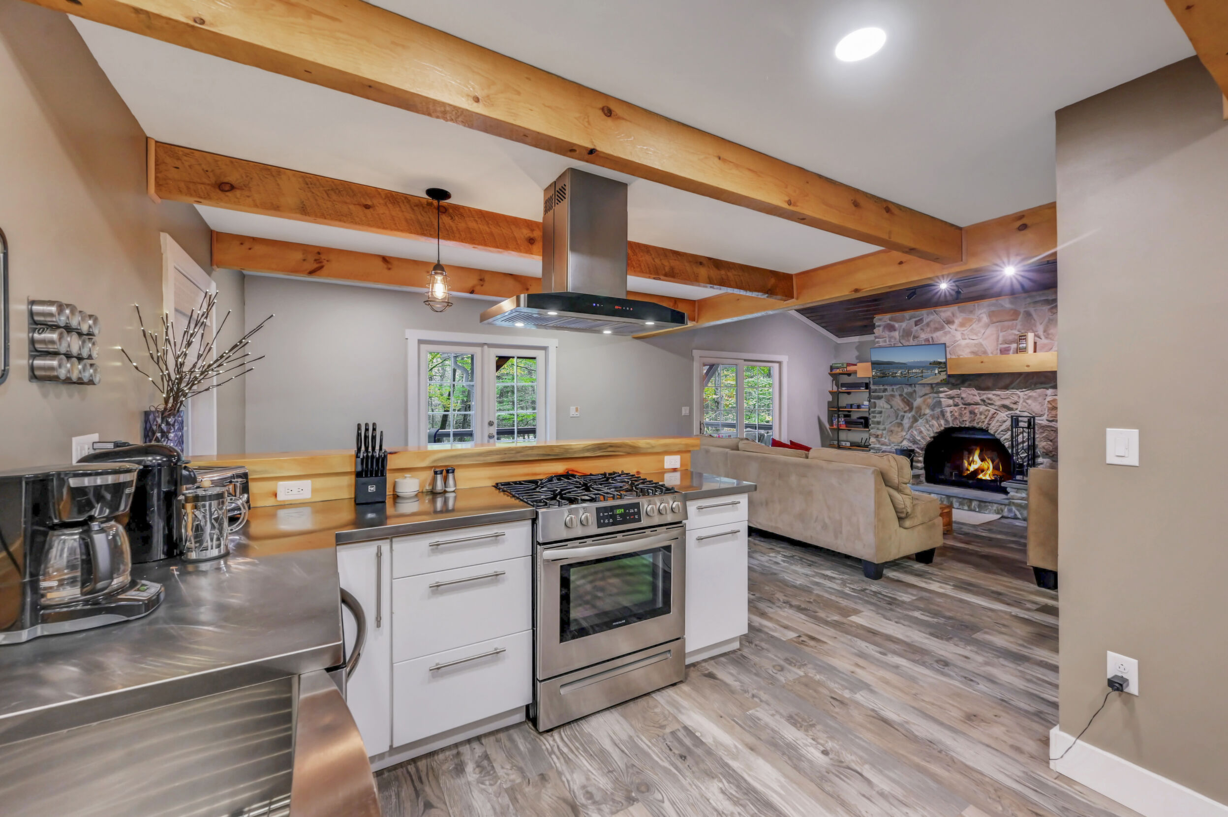 Welcome to your next venture in the desirable and STR-friendly Big Bass Lake Community Association! This unique, fully furnished, and fully stocked short-term rental business is a turnkey opportunity, with a proven and steady presence on Airbnb since its complete renovation in 2021.The homeUnique Design: Step into a captivating rustic-industrial haven. The home features extensive locally hewn, solid white pine elements, including a striking mantel, bartop, posts, and beams that add warmth and character.Meticulous Craftsmanship: Interior and exterior stonework, crafted by the area's top residential stone masonry crew, provides a touch of natural elegance.Fully Reconstructed: In 2021, this property was taken down to the studs and rebuilt from the ground up, with all new wiring, plumbing, insulation, roofing, flooring, interior and exterior wall treatments, doors, windows, and furnishings.Distinctive Accents: An impressive pallet-wood accent wall serves as a stunning focal point, highlighting the home's distinctive style.Spacious Layout: Over 2, 400 square feet of living space, with 4 bedrooms and 2 bathrooms, provides ample room for guests to relax and enjoy.The kitchen: A chef's delightProfessional-Grade: Designed by a local chef with over 30 years of kitchen expertise, this kitchen is built for functionality and efficiency.Hosting-Friendly: Professional quality appliances and high-end fixtures are arranged in a layout perfectly fine-tuned for preparing large meals and hosting groups.Restaurant-Inspired: Features include restaurant-inspired stainless steel countertops, a commercial-themed sink faucet, and ample storage, making it perfect for serious use by professionals and home cooks alike.The businessTurnkey Operation: This sale includes all furnishings and inventory, allowing for a seamless transition of ownership.Established Rental: With a steady presence on Airbnb, you can take over a thriving business from day one.